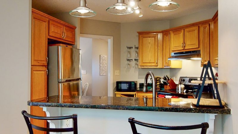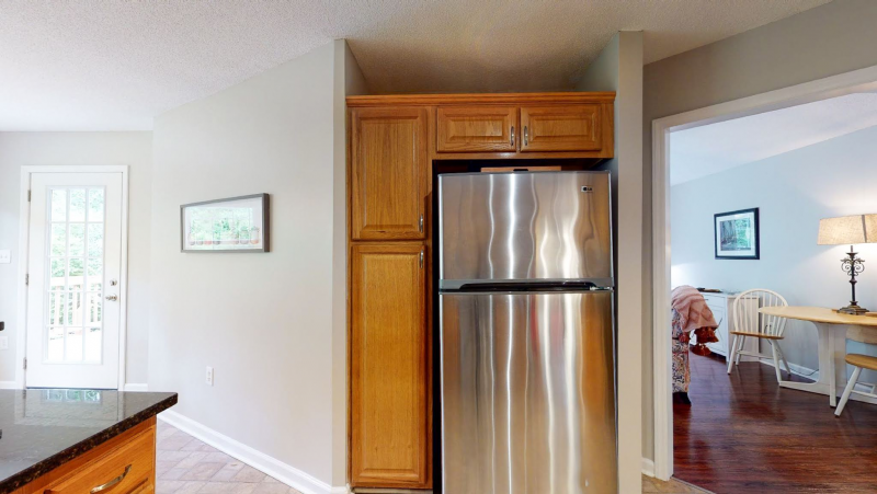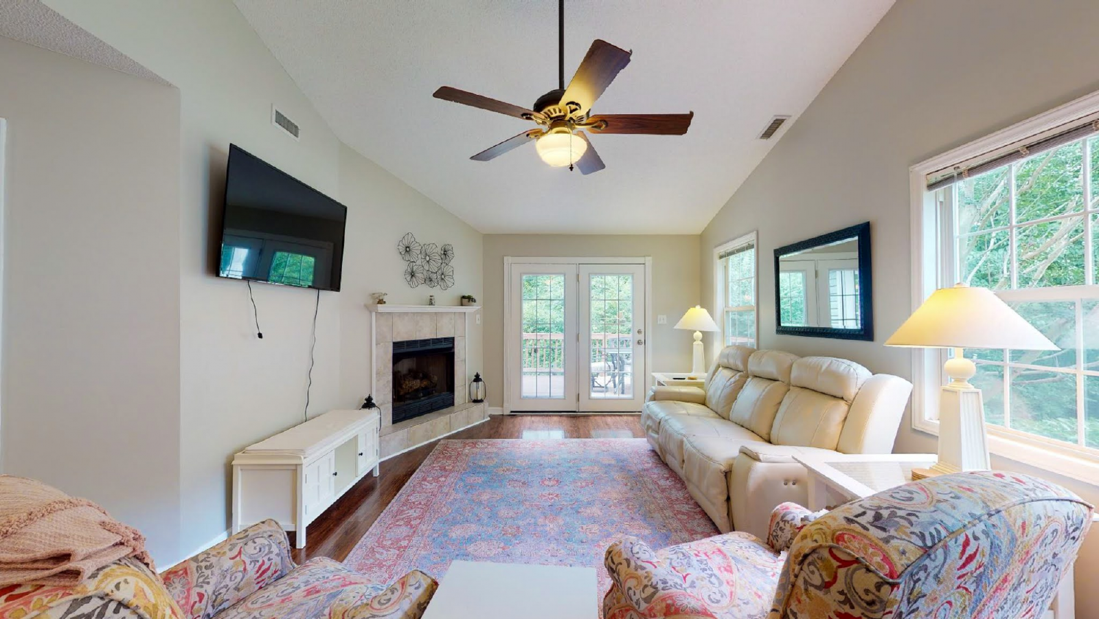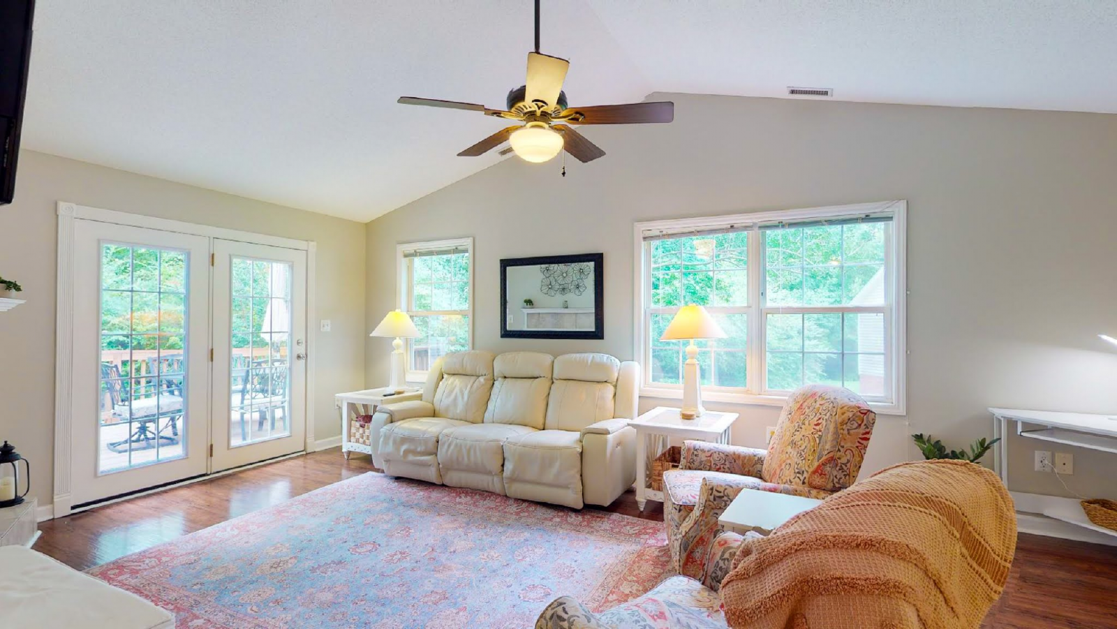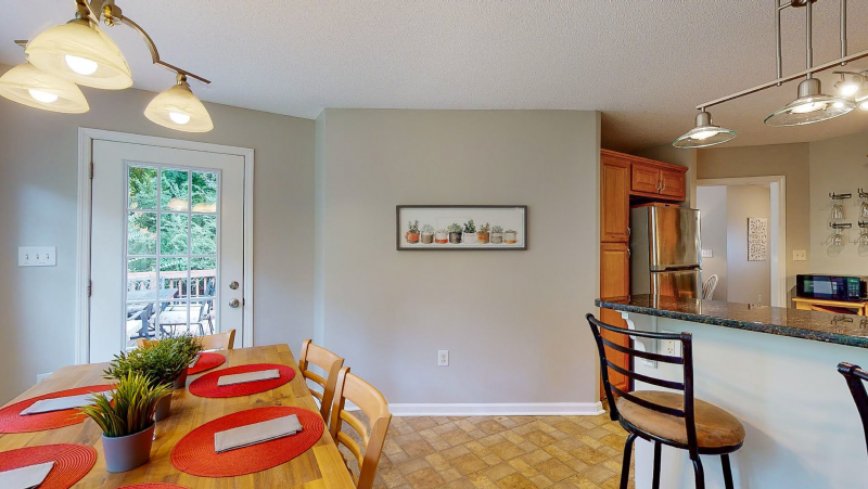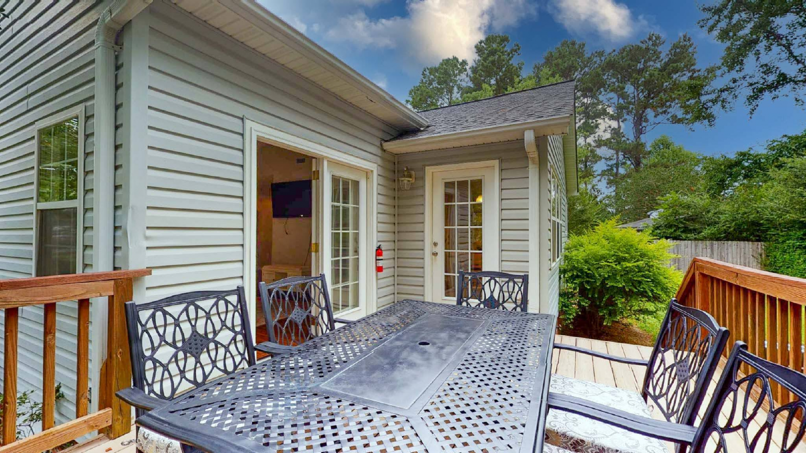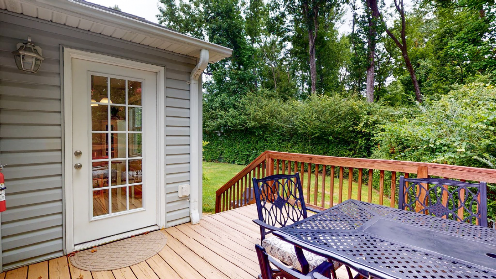 Work away from home if you must, with Wi-Fi and USB charging in two work areas (one private). Relax in the sunny dining area or on the adjacent 16x12 deck with a patio table and giant umbrella shade overlooking the private backyard- see how many bird species you can spot! The large living room has multiple recliners and a big wall-mount TV that opens to the deck. A game table with a section of favorites and a second work/play desk is also in the living room. The Kitchen is fully stocked with cooking and serving necessities and includes wall-mounted wine glasses! There's a breakfast bar plus seating for 6+ in the dining area - and wired USB plugs for charging phones, iPads, or games. Just off the deck is a full-size Weber Genesis gas grill. A sizeable cantilevered umbrella will keep you in the shade!