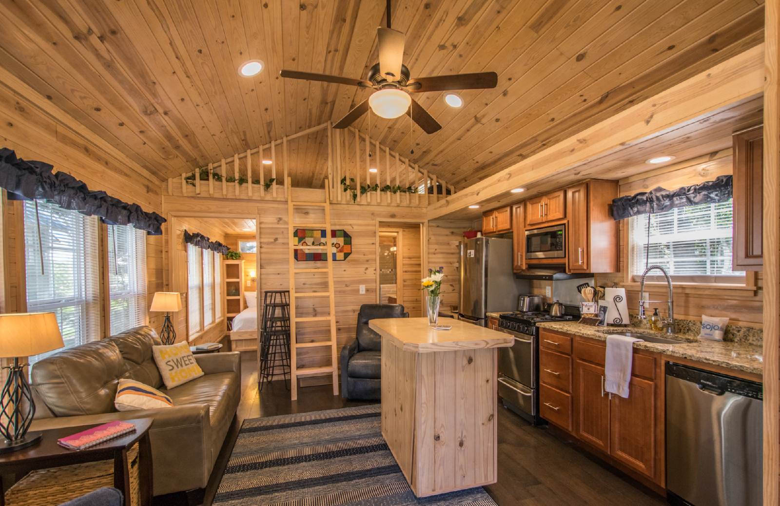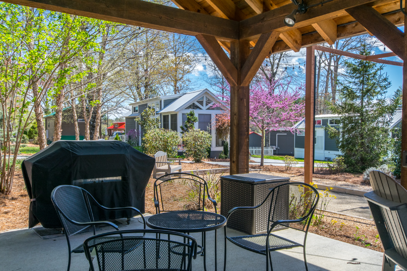 Nestled within the serene environment of the Simple Life gated community in scenic Flat Rock, NC, this charming tiny home offers a perfect escape from the hustle and bustle of daily life. Designed with comfort and convenience in mind, our home accommodates up to four guests with two cozy queen beds—one tucked away in a lofted space, providing a snug hideaway.