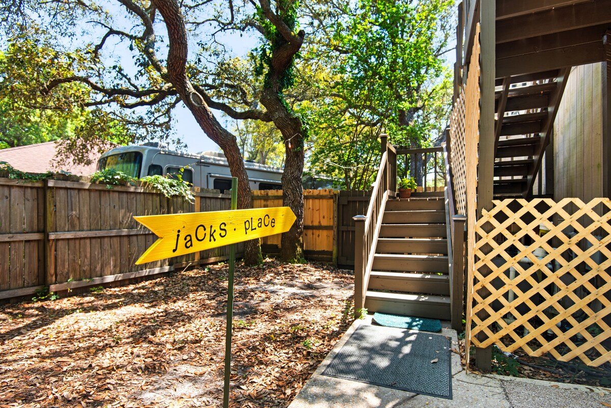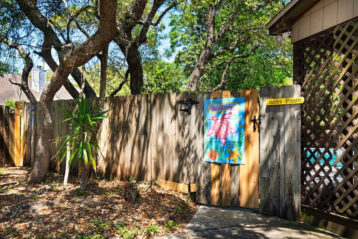 Jack’s Place is a unique Gulf Breeze vacation rental with an original “Old Florida” atmosphere. It includes the "Tree House" with an inspiring view of the backyard jungle. A large verdant backyard pool big enough to do laps. A kitchenette to make simple meals like breakfast & spaghetti not big enough for larger endeavors. Enjoy this beautiful refurbished place, 15mins from PNS Beach, 10mins from Live Oak National Park. Walking trails 15mins away by foot. We like to recycle & hope you will too!
