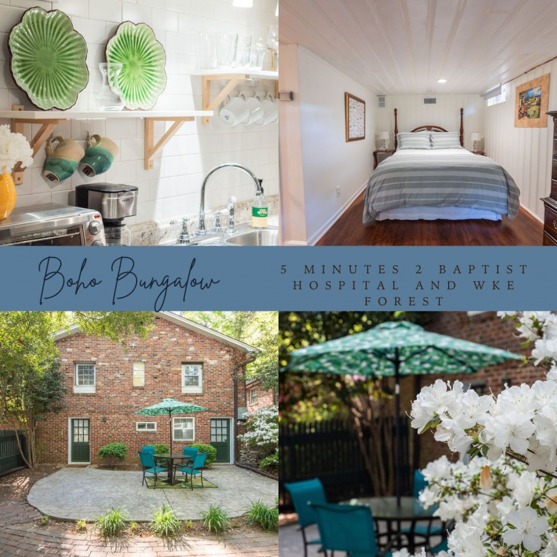 After a day of exploration, retreat to your private patio, where lush greenery surrounds you, providing the perfect backdrop for relaxation. Sip on a glass of wine as you soak in the serenity of your surroundings, unwinding in the peace and quiet of your secluded sanctuary. With its professional landscaping and tranquil ambiance, "The Boho Bungalow" offers a sense of seclusion and security, ensuring you can truly unwind and recharge during your stay. Whether you're seeking a romantic getaway, a solo adventure, or a business trip with a touch of leisure, this charming retreat offers the ideal setting for your Winston-Salem sojourn.