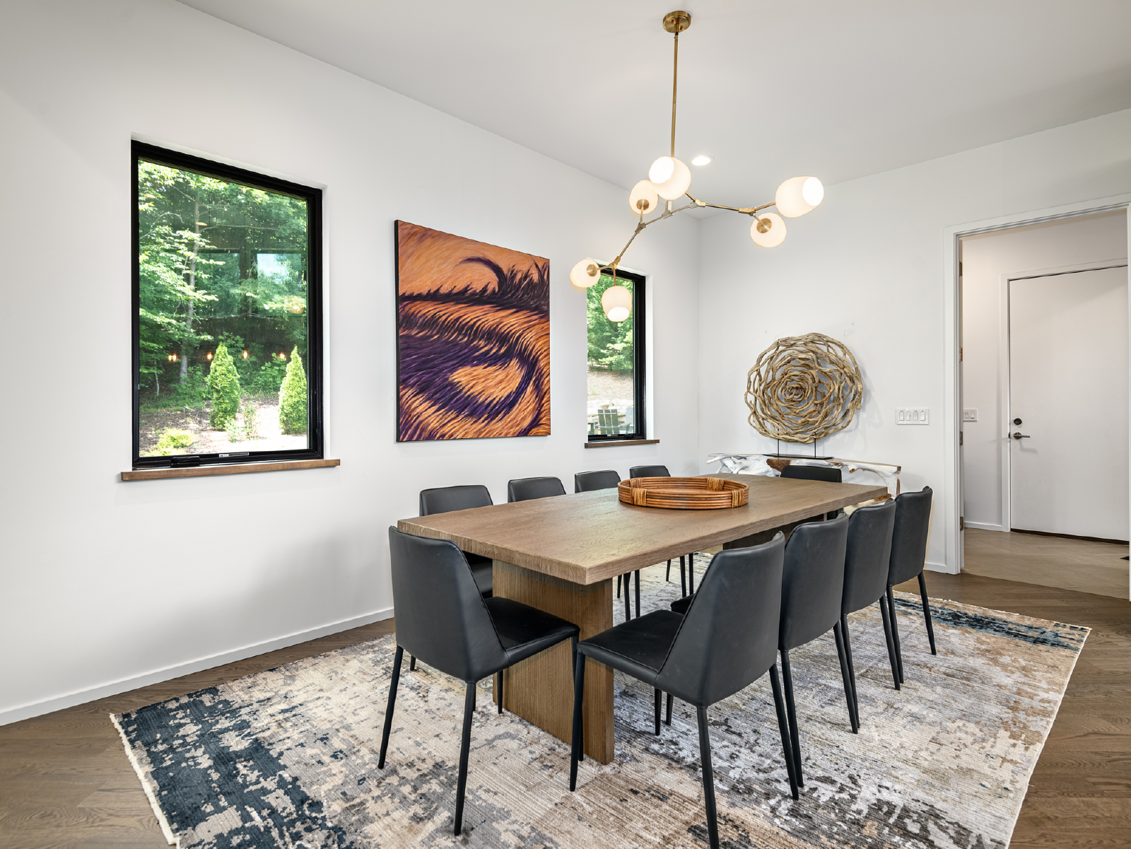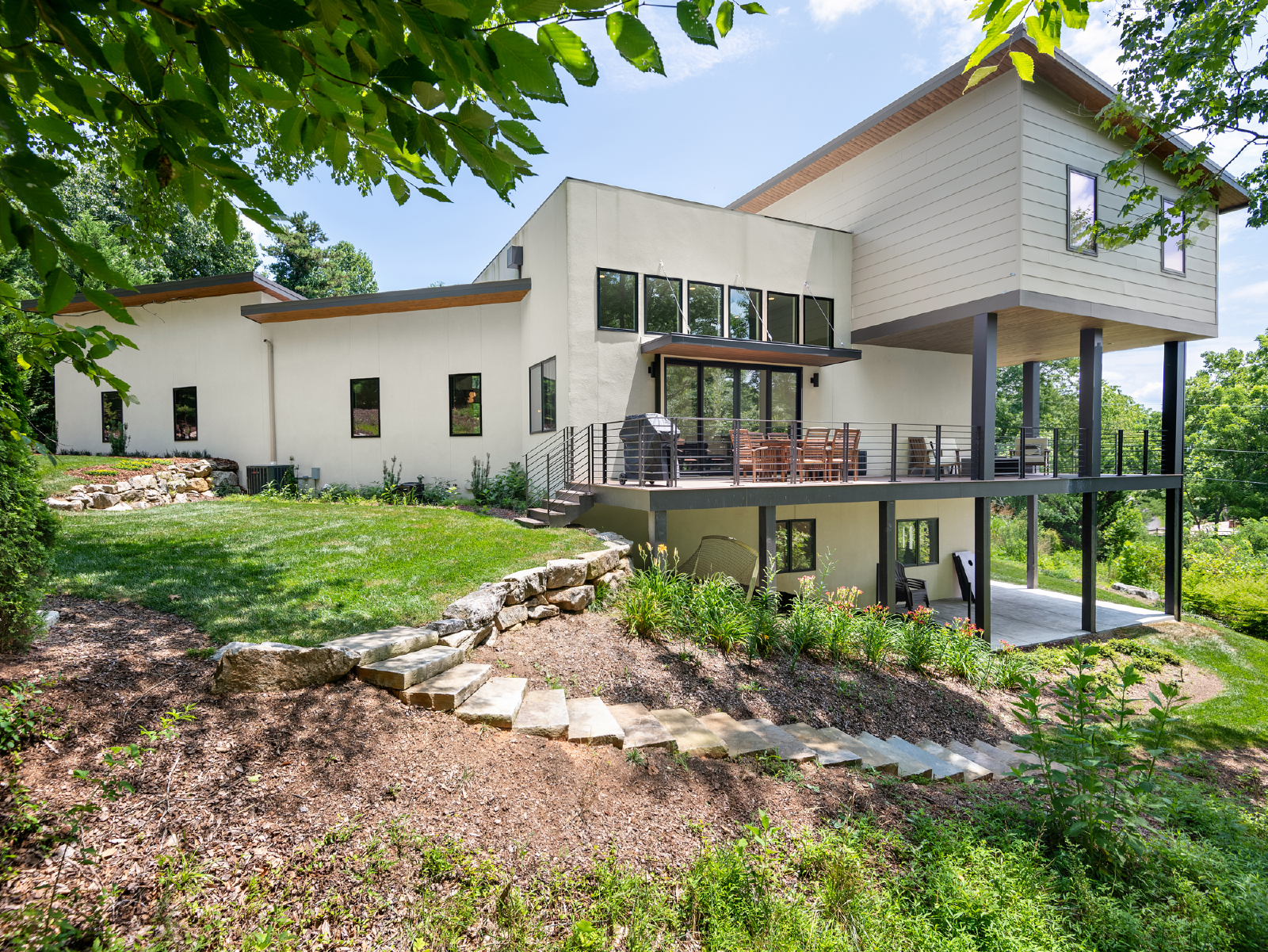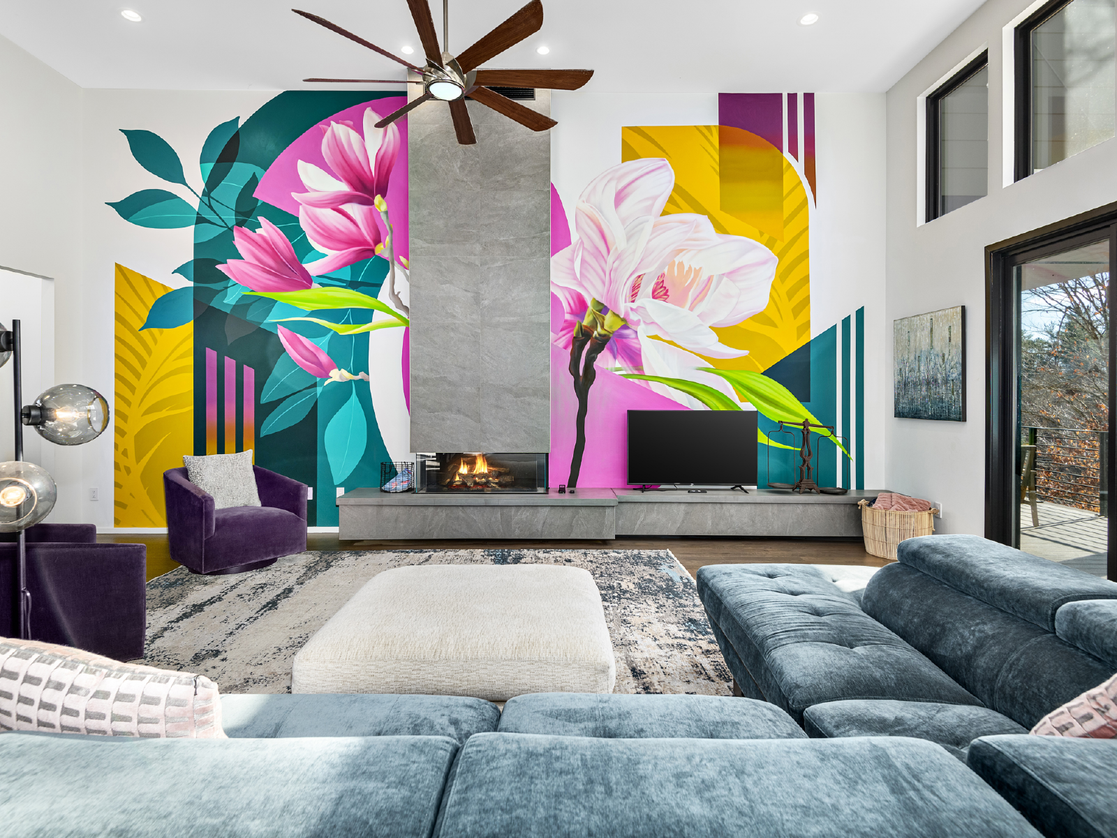 Tucked away down a country road, this 5-bedroom, 5-bathroom home is a modern, art-filled oasis, just a short drive from Asheville and the Biltmore Estate. Our architecturally designed house has everything you'll need for a relaxing stay in the mountains, with some extras you didn't expect (like an indoor movie theater and incredible murals!). With space to spread out, you can enjoy coffee on the back deck overlooking the French Broad River Valley or relax by the fire pit in the evening.