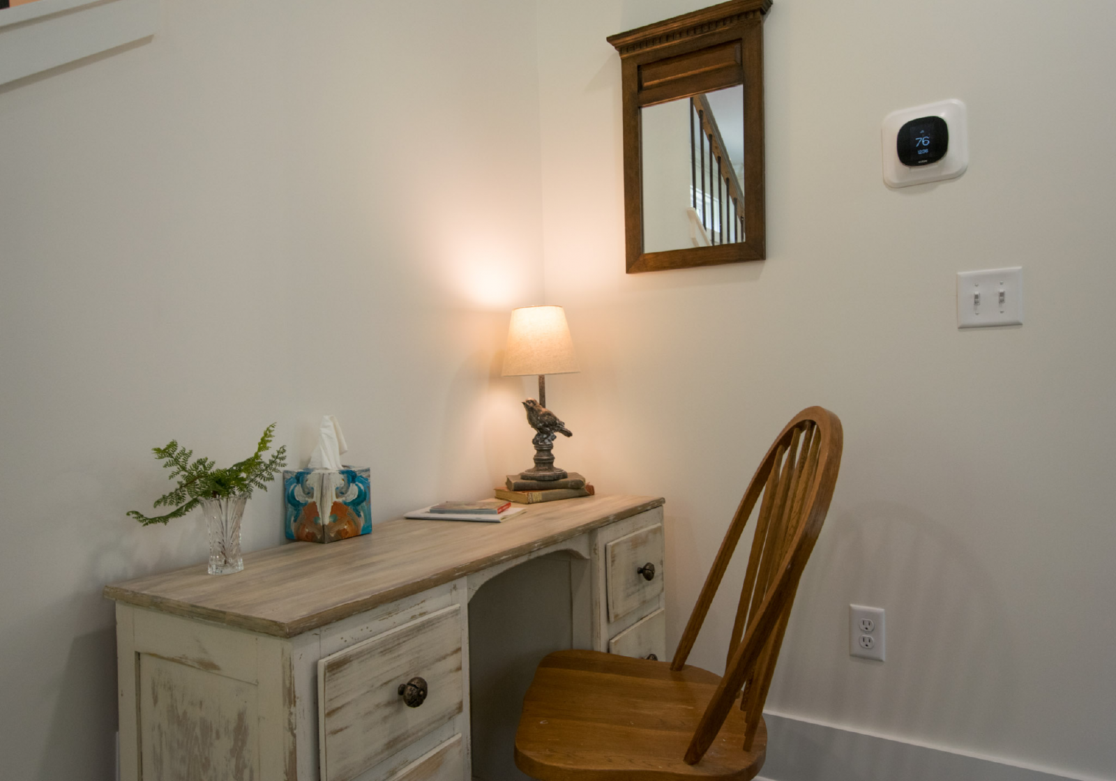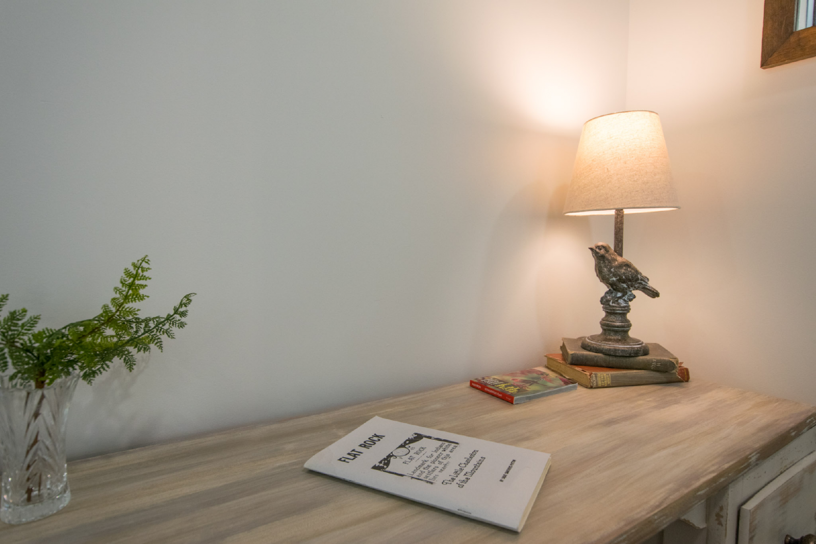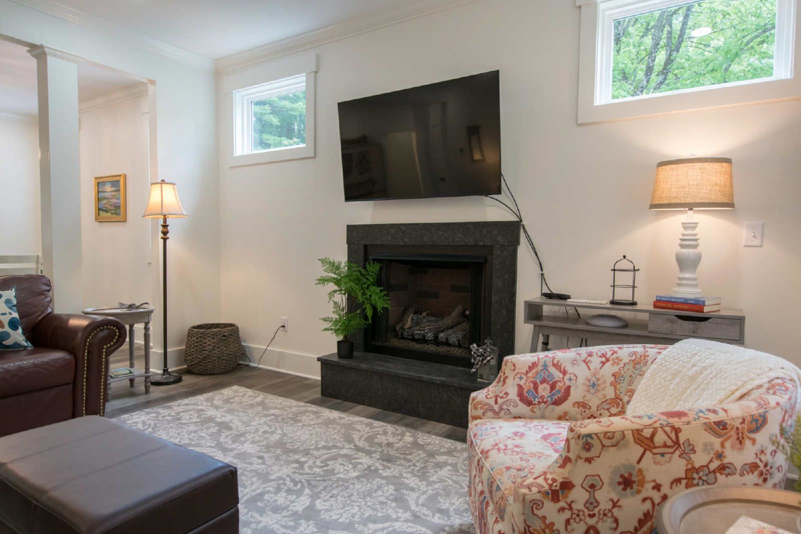 Step outside to find a lovely porch area where you can unwind with a cup of coffee or a glass of wine, taking in the tranquil surroundings. The home's prime location, just across the street from the Flat Rock Playhouse, allows you to enjoy local theater productions and explore the vibrant arts scene.
