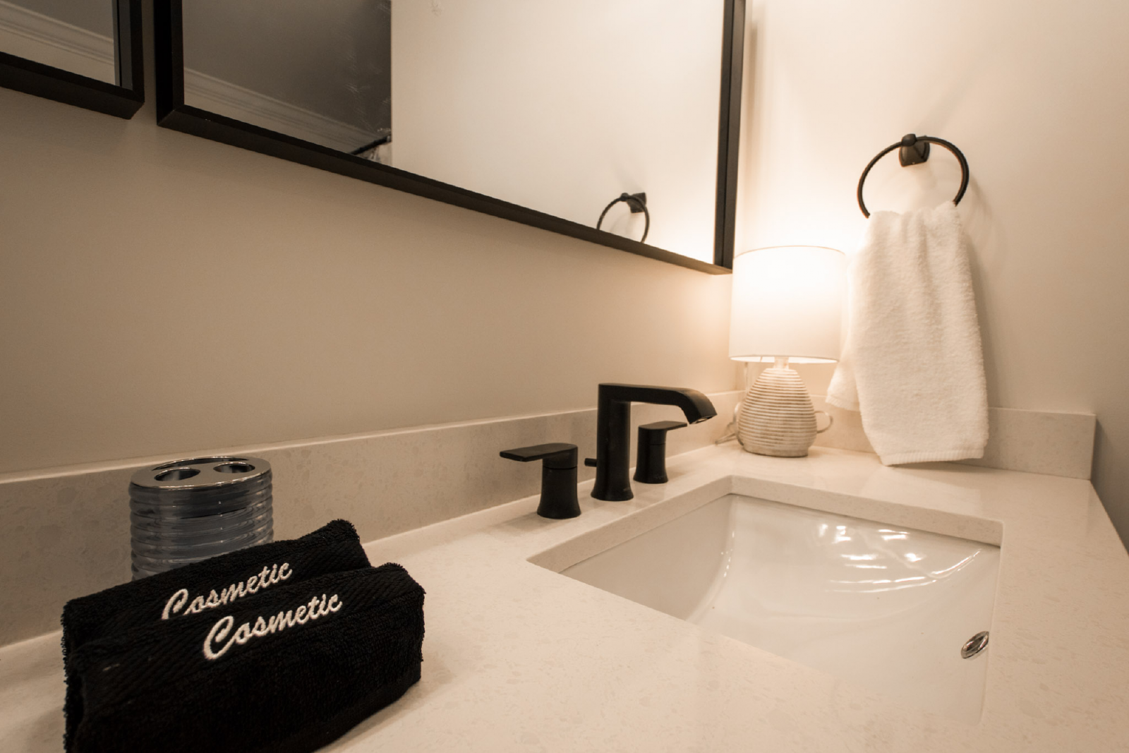 The master bedroom offers a serene escape with a luxurious en-suite bathroom and private balcony, while the two additional bedrooms are equally charming and share a well-appointed bathroom. A convenient half-bath is located on the main floor for guests.