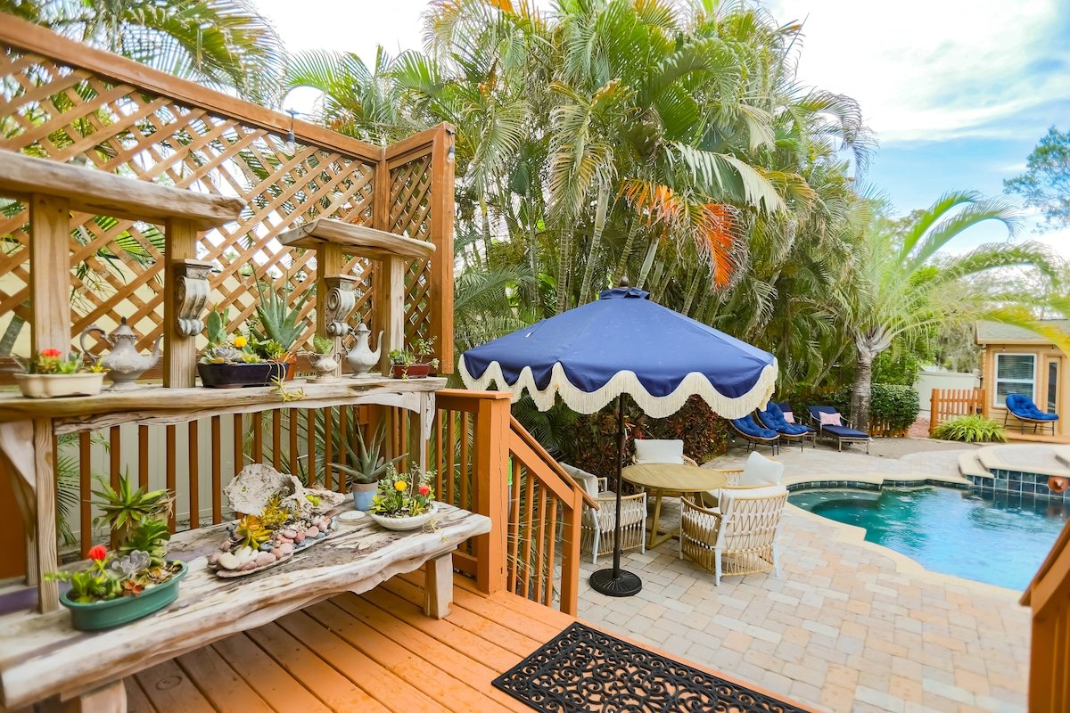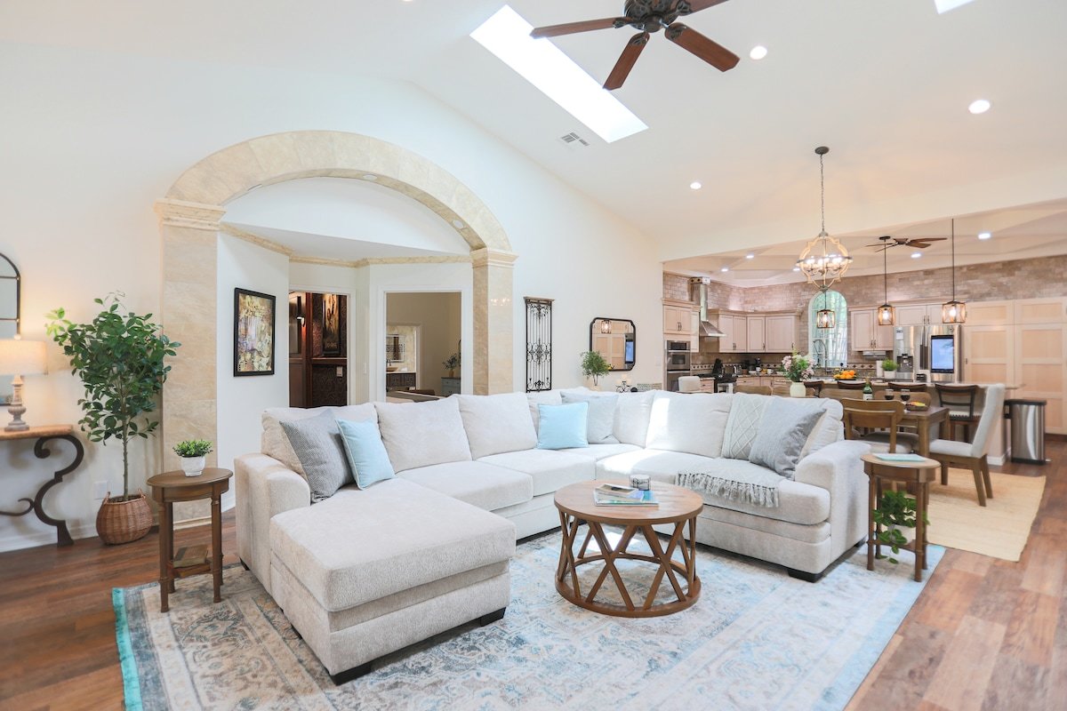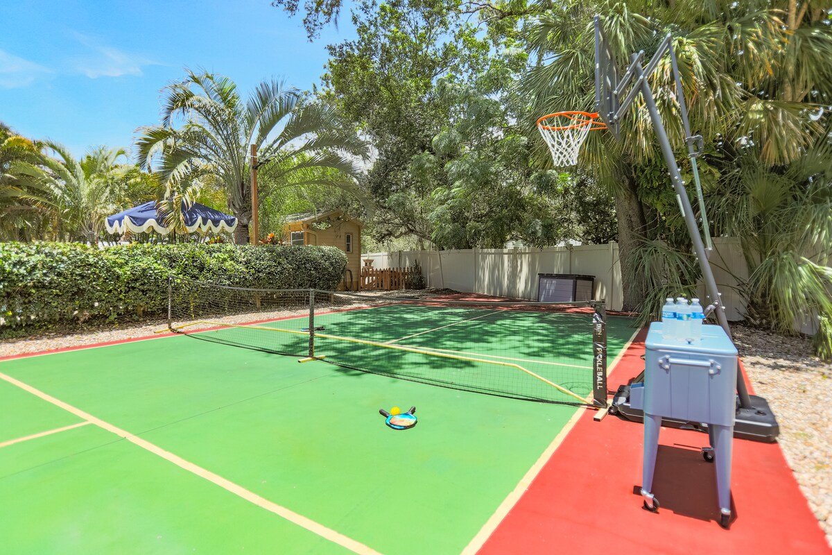 Welcome to Tuscan Breeze Manor—an elegant 4,400+ sqft estate in Palm Harbor on 1.3 acres. Enjoy 4 bedrooms, 6 bathrooms, a private movie theater, game room with pool and poker tables, PS4 and spacious indoor living. Outdoors, relax by the pool, cook in the outdoor kitchen, play pickleball, or let your dog roam the fenced dog park. Just 5 minutes from Honeymoon Island, this is the perfect luxury getaway for families and groups that want an unique and private resort experience.