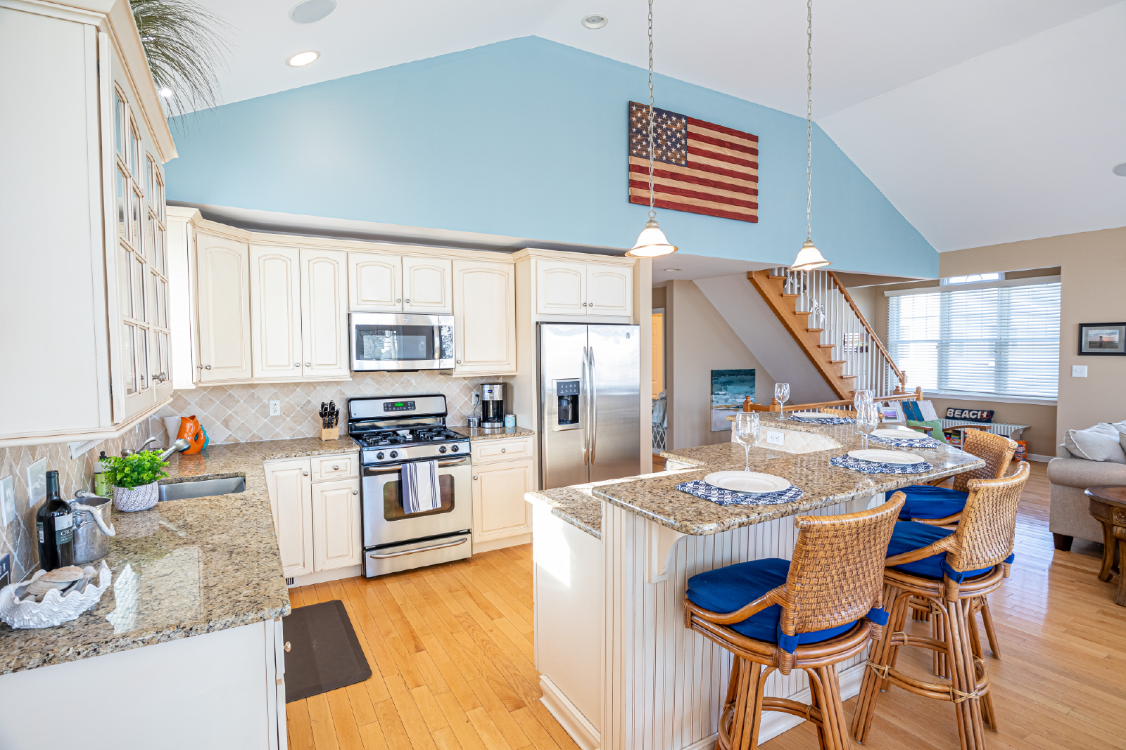 Situated 2 short blocks to the beach, 1 block from a playground with tennis, basketball and bocce courts, and a few blocks from restaurants and shops along Dune Drive, this beautifully appointed home is a perfect place to experience everything about Seven Mile Island. It's also outfitted to impress, with abundant living space inside and out, board games, lawn games, beach gear and five bikes for guest use.