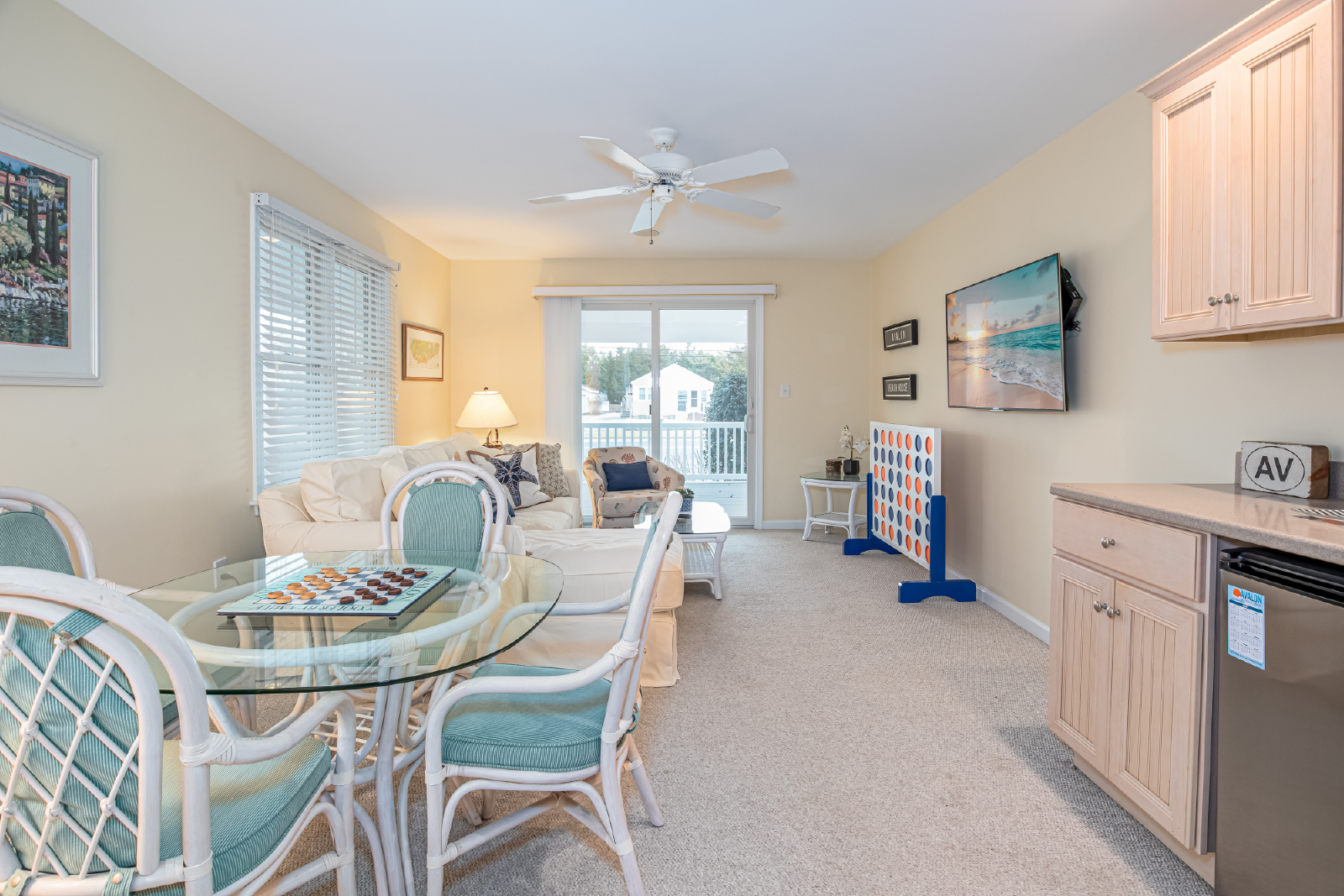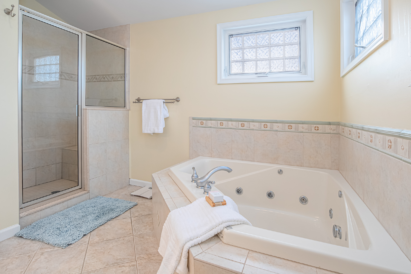 Up on the third floor, you're welcomed into the luxurious Main Suite. This huge space boasts a King bed, enormous closet, and a bathroom with double vanity, shower and jetted tub. The Main Suite also has sliding glass doors that lead out to a private deck that overlooks the rear yard - a perfect place to start the day with a quiet cup of coffee, or take in the beautiful sunsets in the evening.