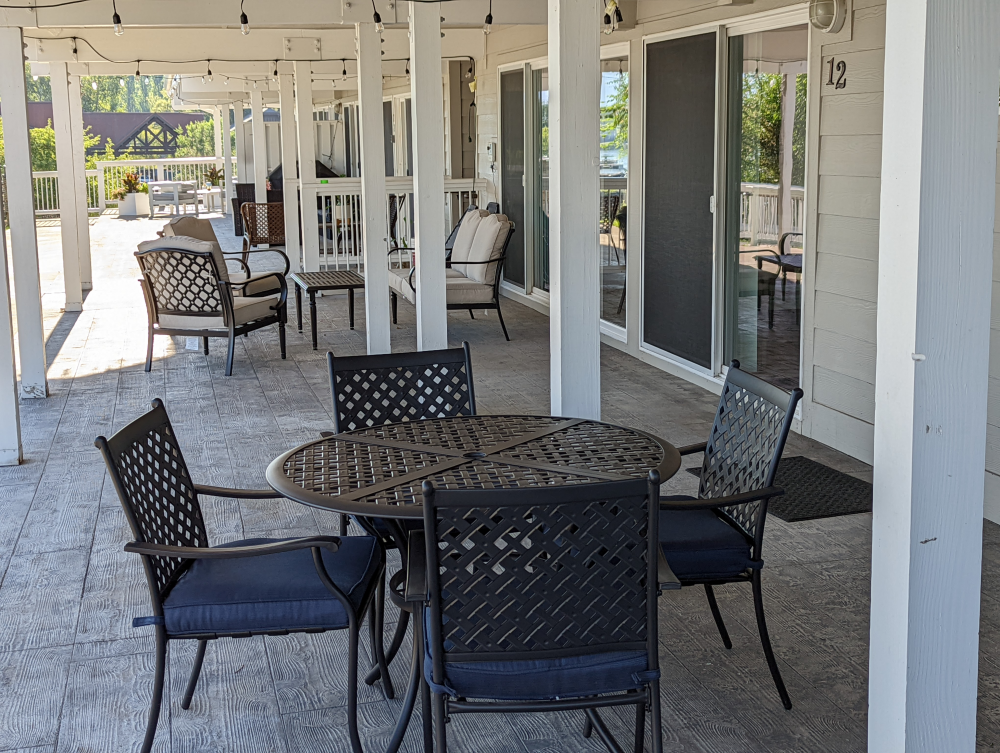 Indulge in sweeping lakeside views and easy access to our shared private day dock and beach area, where you can swim, kayak, fish, or simply unwind by the tranquil shores. Our well-appointed kitchen allows you to prepare delicious meals to be savored with family and friends, while the large fully furnished Patio provides the ideal spot to bar-b-que, and play outdoor games and cards while soaking in the beauty of your surroundings, even raining.