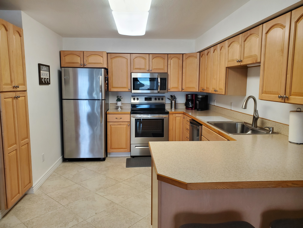 Centrally located between Missoula and Kalispell, our two-bedroom, one-and-a-half-bath condominium offers comfort, conveniently located close to groceries, restaurants, casinos, and downtown Polson. The master suite features a queen bed, and access to the half bath, washer, and dryer, while the second bedroom offers a full bed. The 3/4 walk-in shower bath is in the hallway. The living area offers a new carpet, split system AC, along with new kitchen appliances. The Condo complex offers an onsite gym for staying active during your stay.