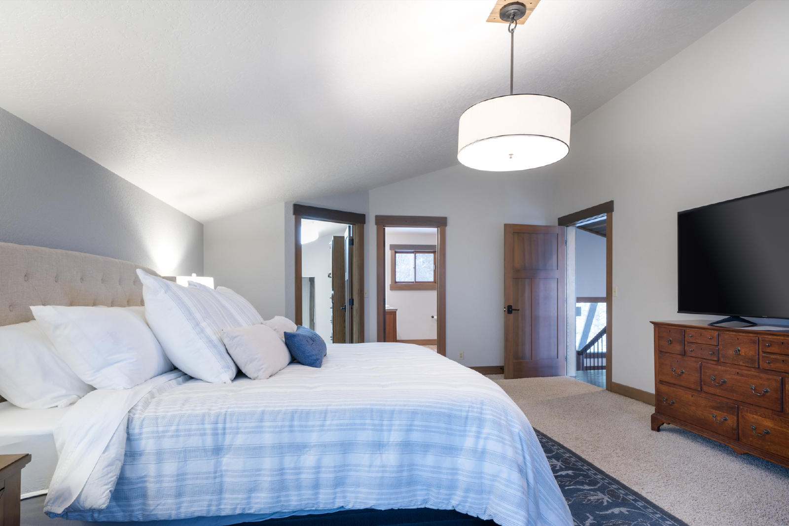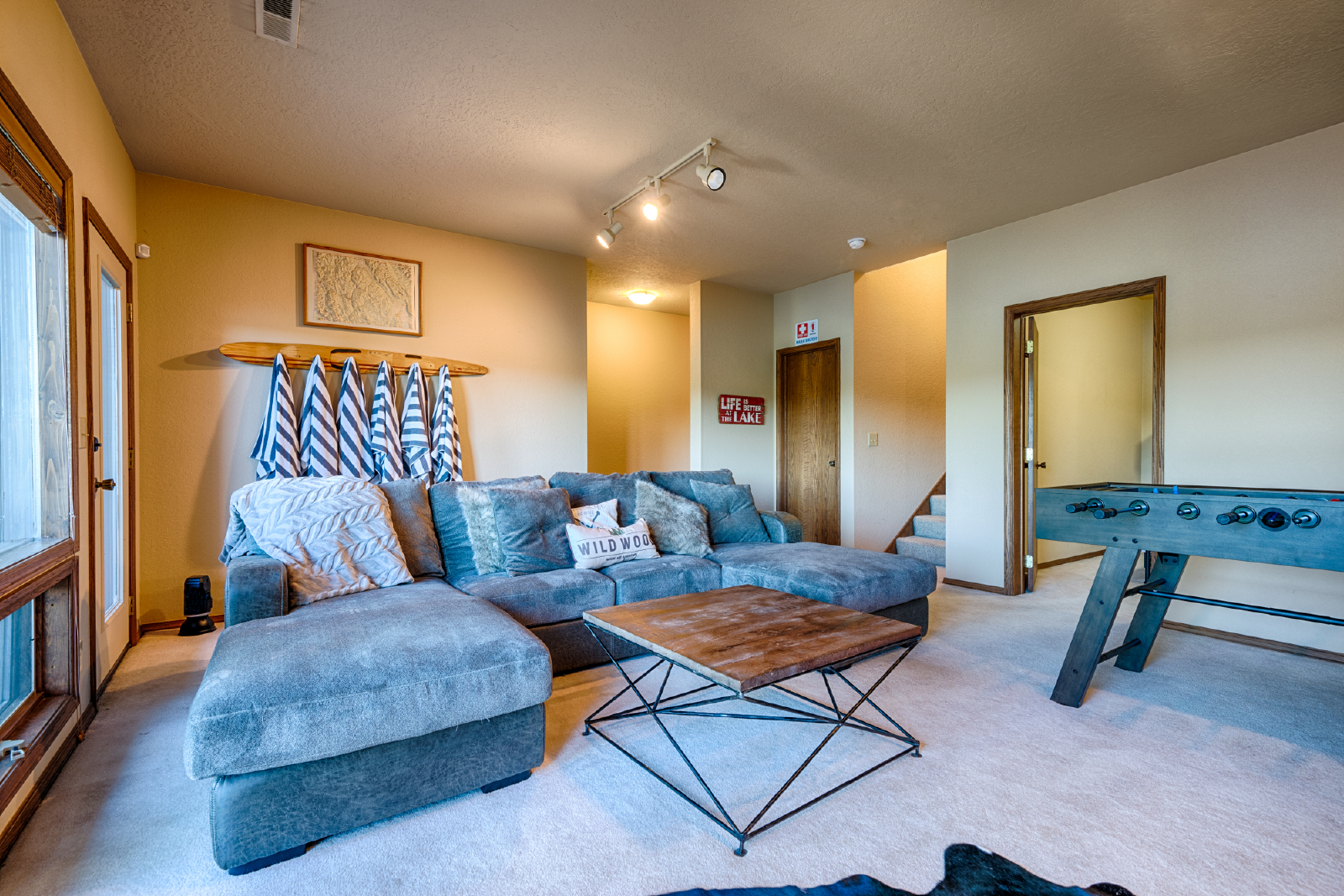 Beautiful three-story home with 6 bedrooms and triple decks. Come and visit one of Montana's many lakes with private dock and tons of water fun to be had year-round. Come and ice fish or bring your speed boat during the hot summer months. There is a massive, remodeled kitchen with all your needed appliance both big and small. This house can host up to 14 people. You will not want to miss a winter day by the 2-story fireplace or a drink on your deck with family and friends.