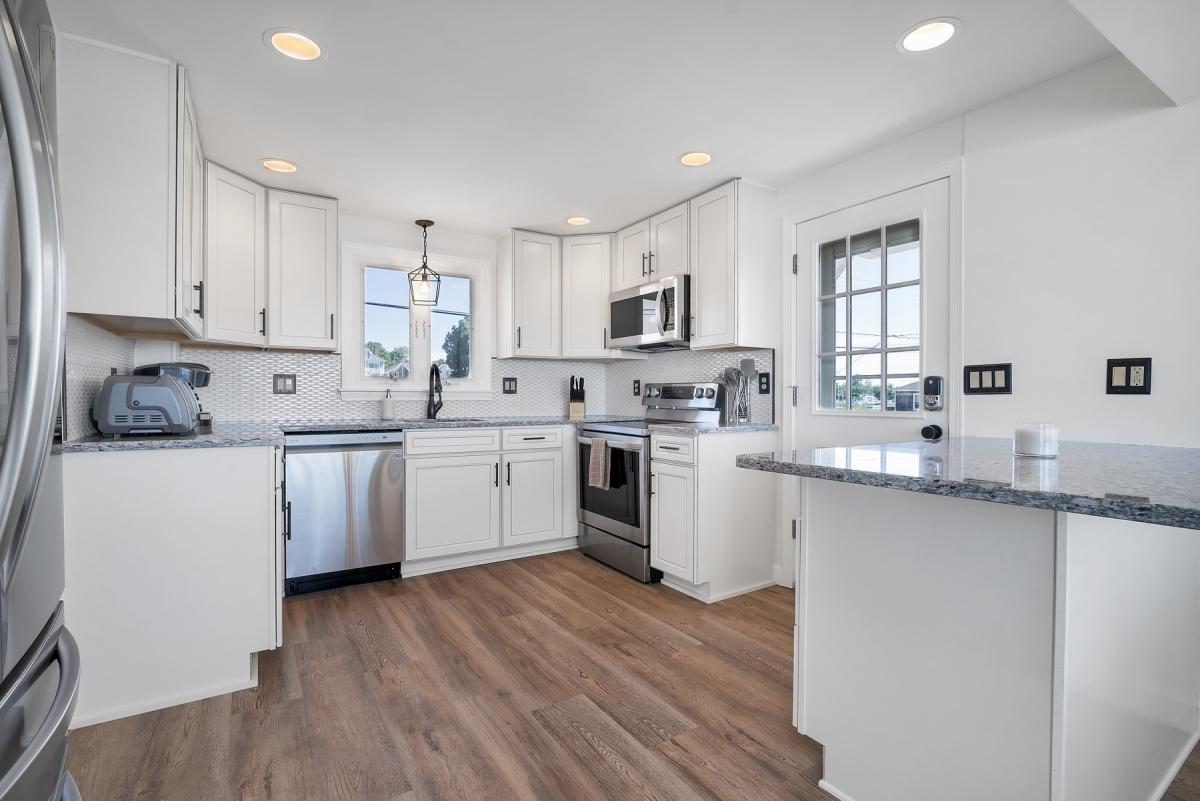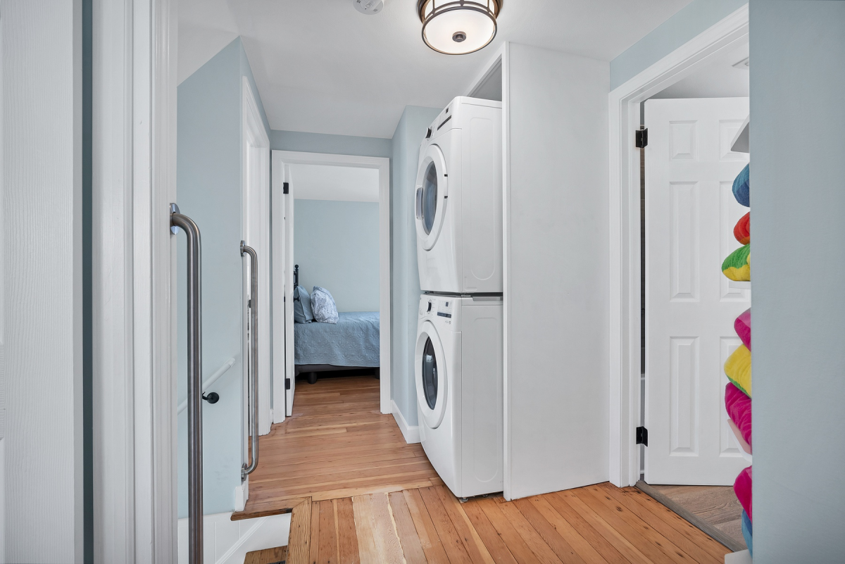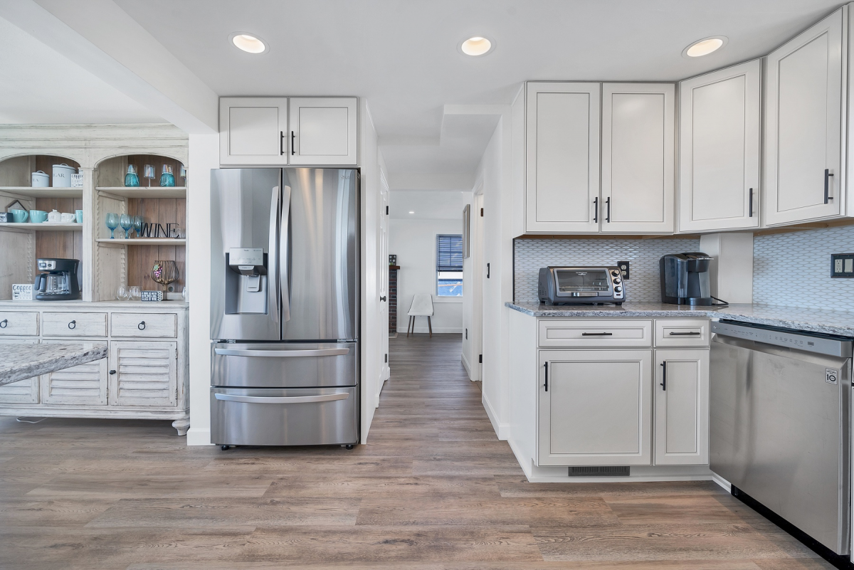 The home has four bedrooms with two bathrooms and a large private beach & entertainment space inside and out. Inside has updated appliances and brand-new furnishings to match this completely remodeled home. Bedrooms on the second floor accompany a full bath, and washer and dryer for your convenience. Downstairs is a living area with comfy seating to relax, a dining room table for 8 plus two additional stools tucked under the island, and a modern kitchen. Outdoors features a seating area with an outdoor gas grill provided for grilling, and the beach, did we mention the beach?