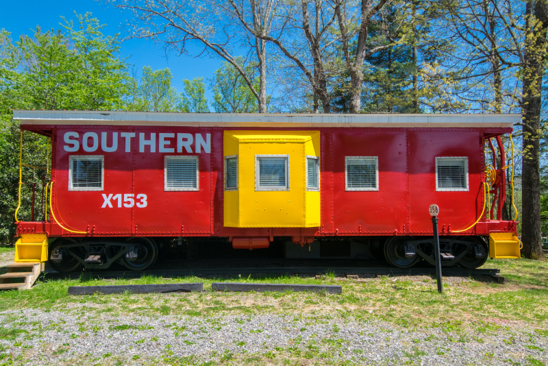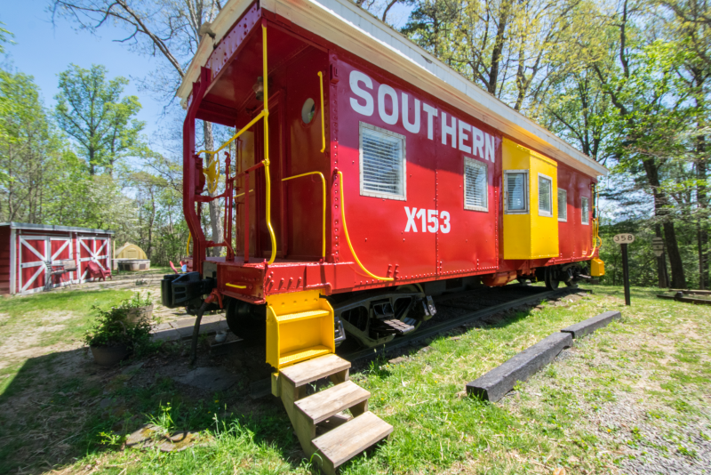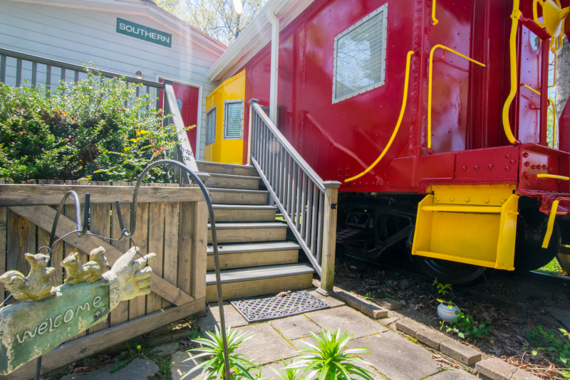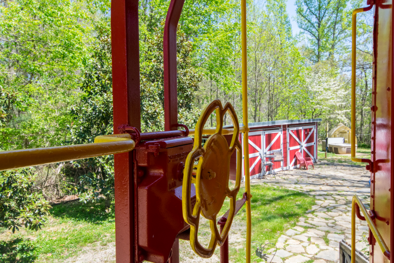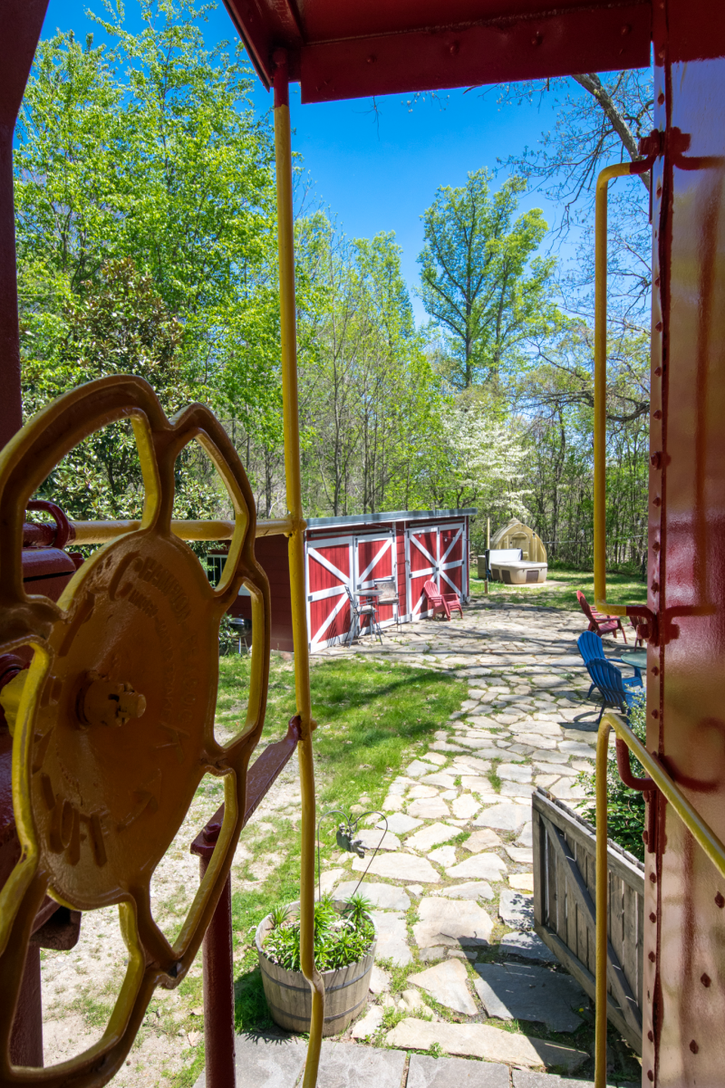 This 1947 Southern Railroad Caboose offers a unique and cozy getaway experience. The caboose has been fully converted to include a comfortable queen bed and a large bathroom with a walk-in shower. The interior has been beautifully decorated with vintage railroad memorabilia and modern amenities, including a kitchen with a fridge, microwave, and coffee maker. Outside, guests can relax on the private deck, courtyard with fire pit hot tub and cafe lights. Located just a short drive from Asheville, this caboose rental offers easy access to local attractions and outdoor activities. Come experience the charm and history of this unique property!