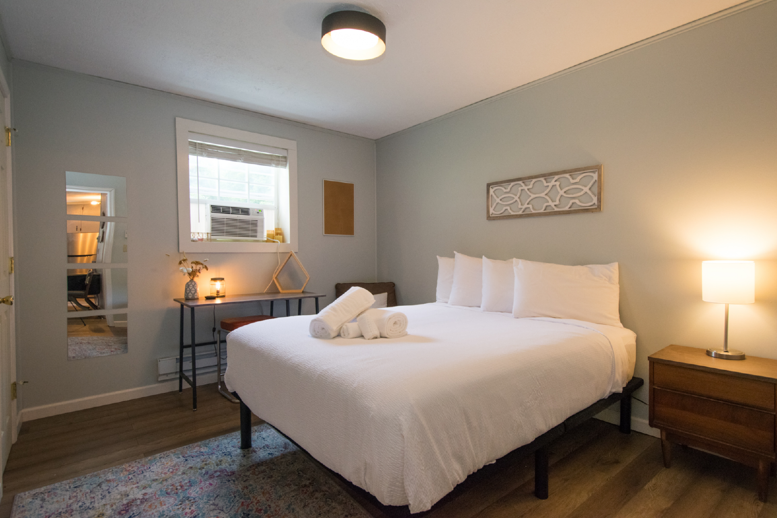 Experience the best of Hendersonville, NC, in this delightful 2 bedroom vacation rental. Nestled close to town and surrounded by scenic hiking trails, this cozy retreat offers the perfect blend of convenience and outdoor adventure. Inside, you'll find comfortable bedrooms, a well-equipped kitchen, and a cozy living area. Unwind in the evenings around the fire pit, sharing stories and roasting marshmallows. With its prime location, you can easily explore downtown Hendersonville's shops and restaurants or venture into nature for a hike in the nearby mountains. Escape the hustle and bustle and book your stay today!