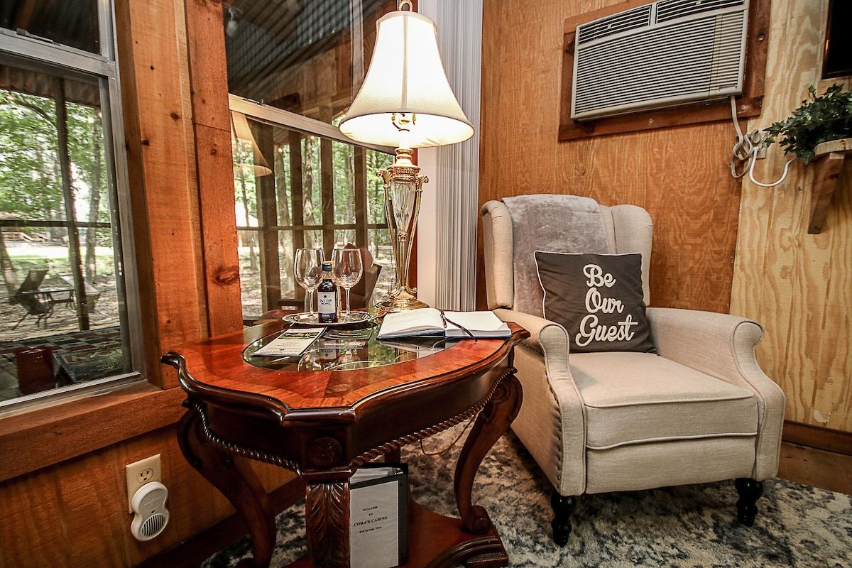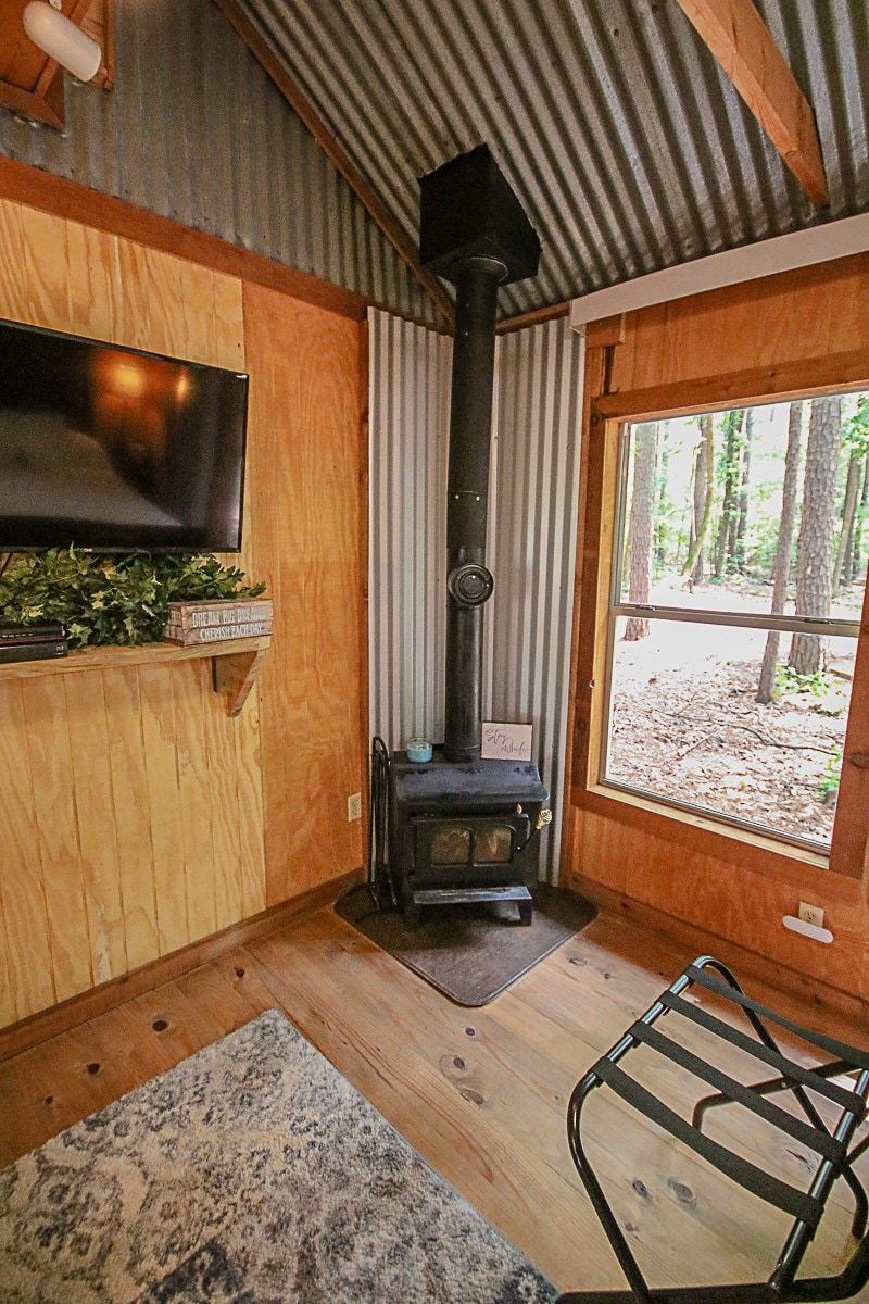 This is glamping not camping, this beautiful 1 bedroom cabin is the epitome of rustic romance hidden among the piney woods of East Texas. Part of our Cora's Cabins complex, this happy little cabin has a kitchenette, queen bed, full bath, a screened in front porch and its own out door fire pit and grill. There is no doubt you will enjoy the Happy Pine Cone and the memories you make while here will last a lifetime.