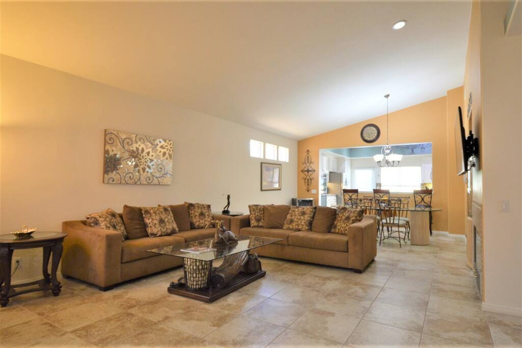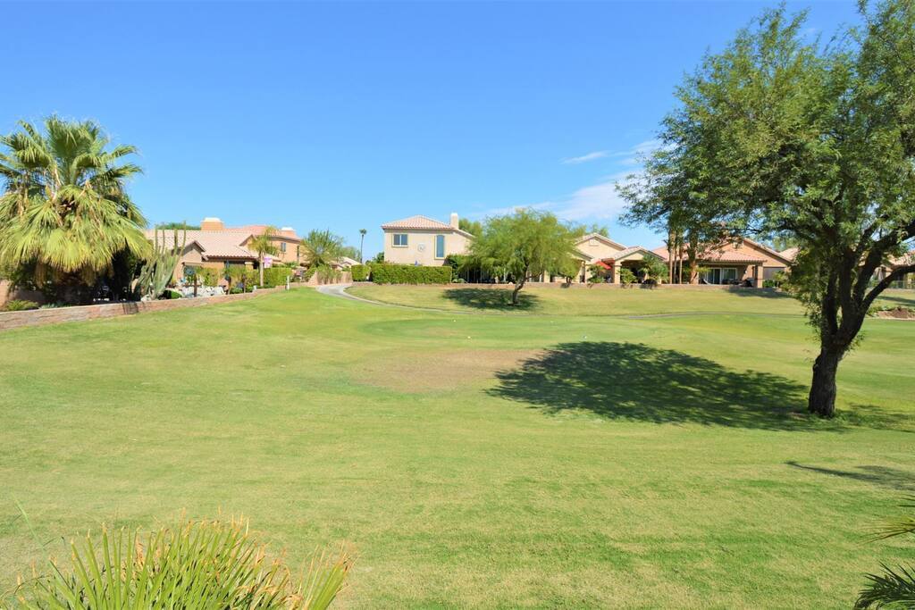 The Indian Springs gated golf-course community is conveniently located near La Quinta and Indian Wells in Indio, California. From the exciting Indio golf/horse community, there is nearby La Quinta shopping, Indian Wells dining, Palm Desert/El Paseo dining and shopping, and less than 10 miles further you can experience the artistic and laid-back cultures of Rancho Mirage and Palm Springs. With an open, public golf course, guests may pay to play on a round-by-round basis, with player cards, or memberships. Be entertained at The Big Rock Pub on the golf course's 18th green for a memorable dining, drinking, and music experience while you enjoy fantastic sunset views by the fire pit or a game of pool. This is California desert-chillin at its best!