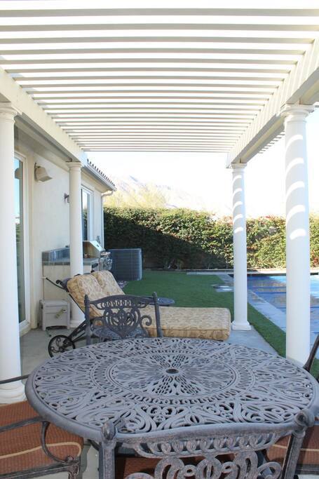 With picturesque views of the mountains, patio, and private swimming pool. This stunning home, recently and completely renovated, has many wonderful features including a large kitchen, granite counters, recessed lighting and is open to living space with gas fireplace. Extended living space with well-appointed patio, BBQ and several seating areas. Huge master bedroom with direct access to the private outdoor pool and spa. A separate casita with 2 double beds and bathroom.