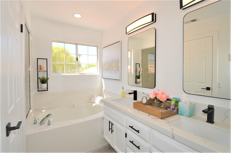 Beautiful views down Cielo 5 fairway to mountains, water with fountain and more. This villa is light, bright and oh so NICE!