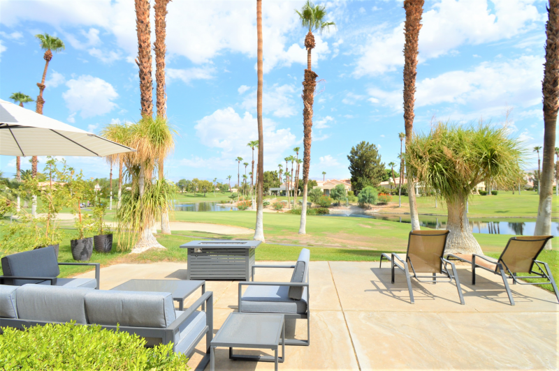 Formal dining area and eat in kitchen. Views from main bedroom and living room/patio. The Desert Princess community has an affordable 27 hole PGA Championship golf course.