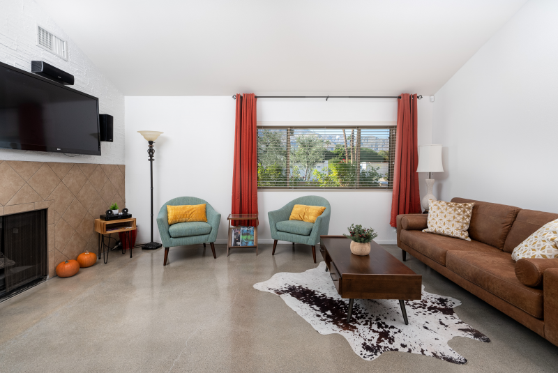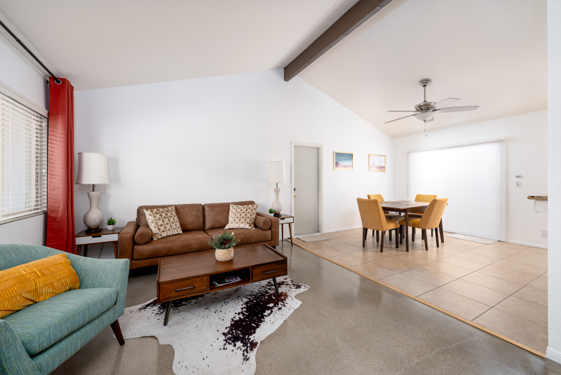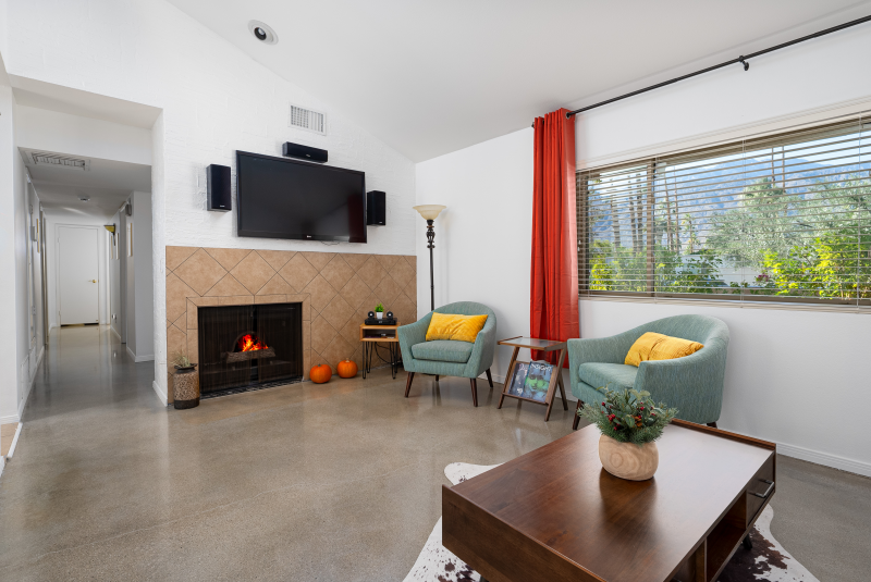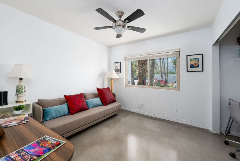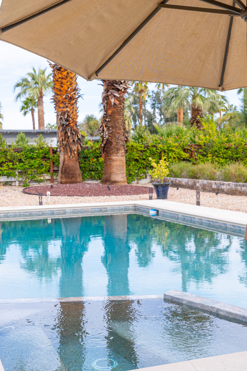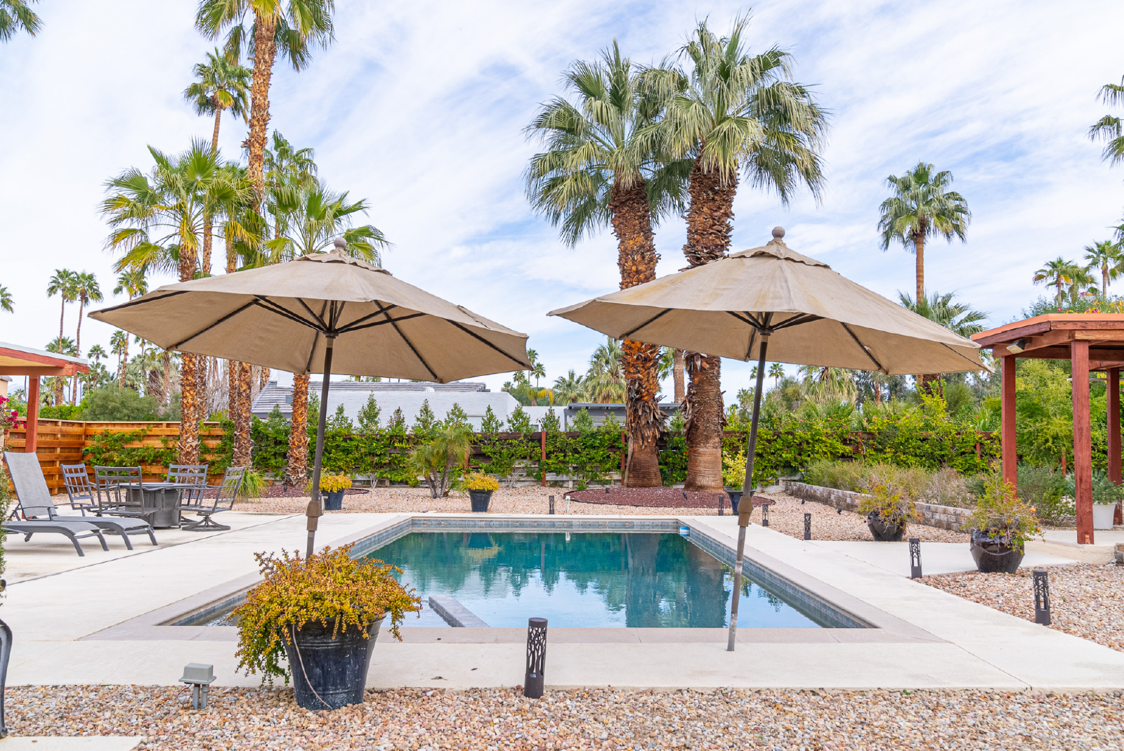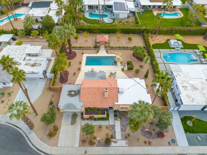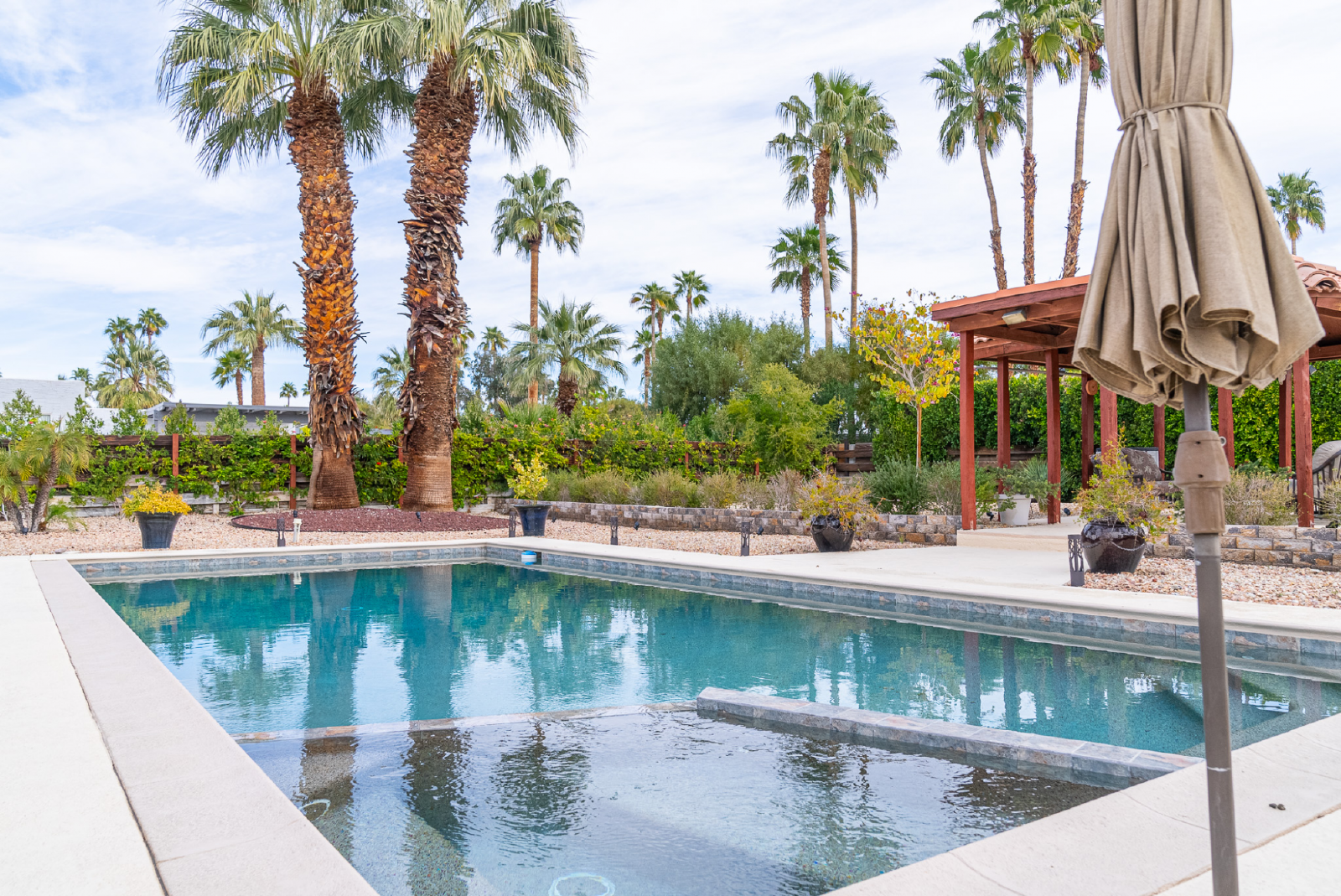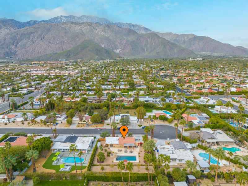 Outdoor entertaining areas, dining and living room, kitchen, and master suite in this beautifully modernized mid-century ranch. This property is just a short drive from Downtown Palm Springs and is surrounded by Desert Landscaping, with large secluded backyard providing a unique and very private oasis in the desert.