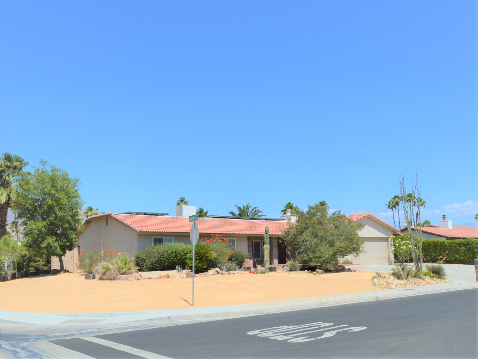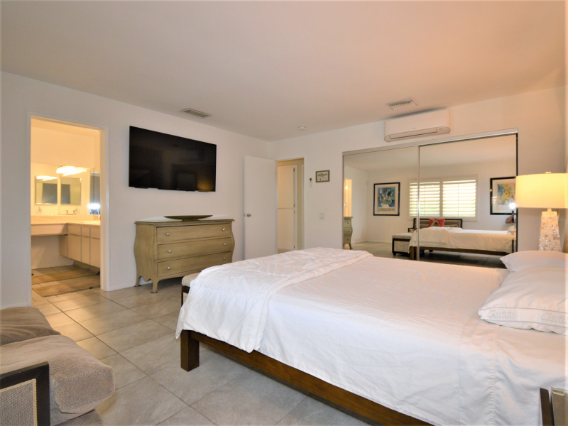 Outdoor entertaining areas, dining and living room, kitchen, and master suite in this beautifully modernized mid-century ranch. This property is just a short drive from Downtown Palm Springs and is surrounded by Desert Landscaping, with grassy backyard providing a unique and very private oasis in the desert.