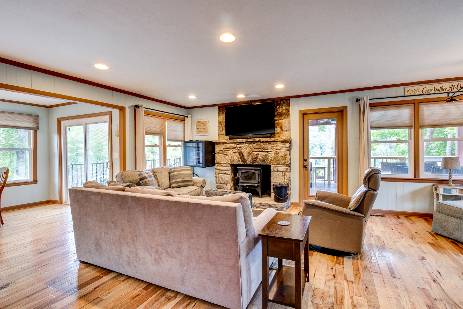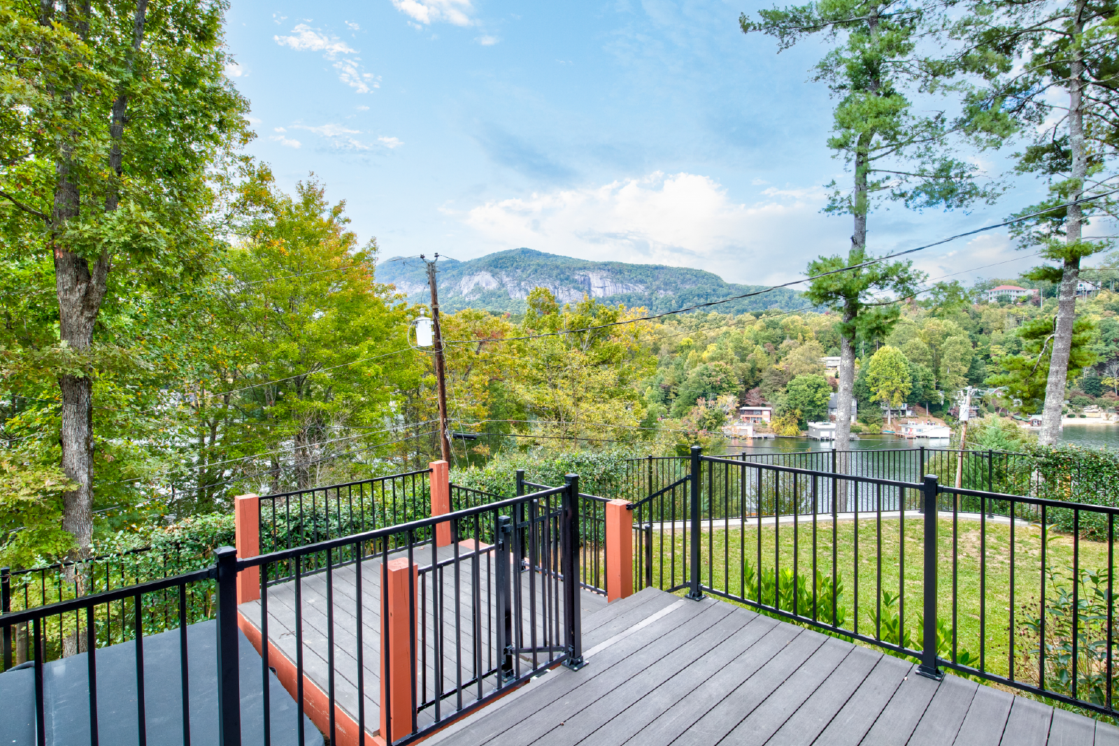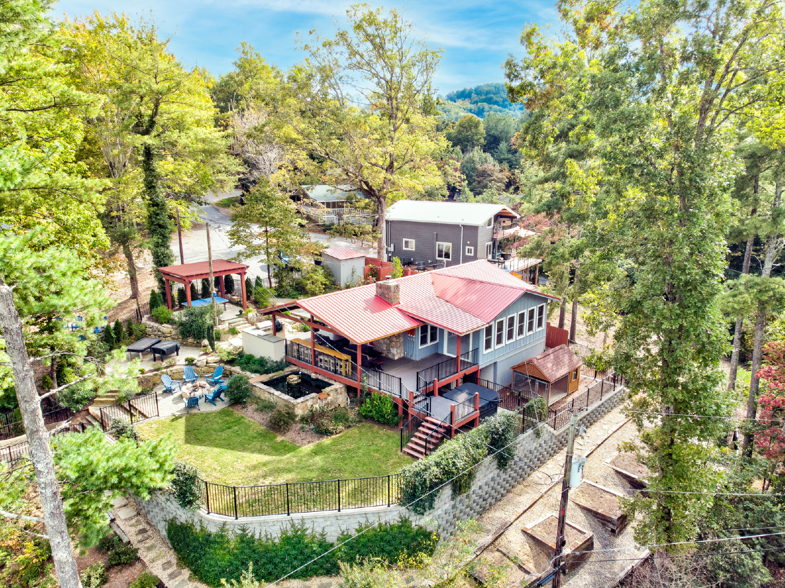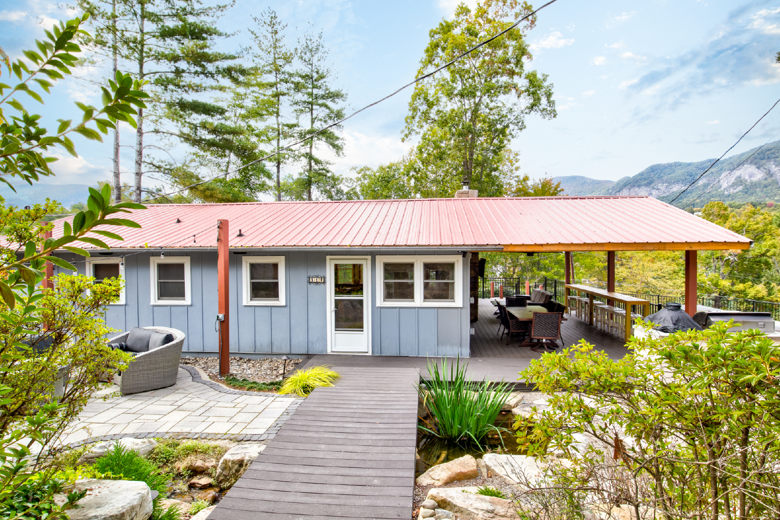 Come for the views and sounds of the Lake and Mountains, stay for the amenities. Cottage at Lake Lure has it ALL! The outside area, perfectly landscaped, outdoor seating, dining & kitchen (Both Gas and Green Egg grill), pool table, Foosball table, koi pond, water fall, two fire places, outdoor heaters, big screen tv, darts and a nice grassy area for kids to play. Minutes from town and 10 minutes to Chimney Rock