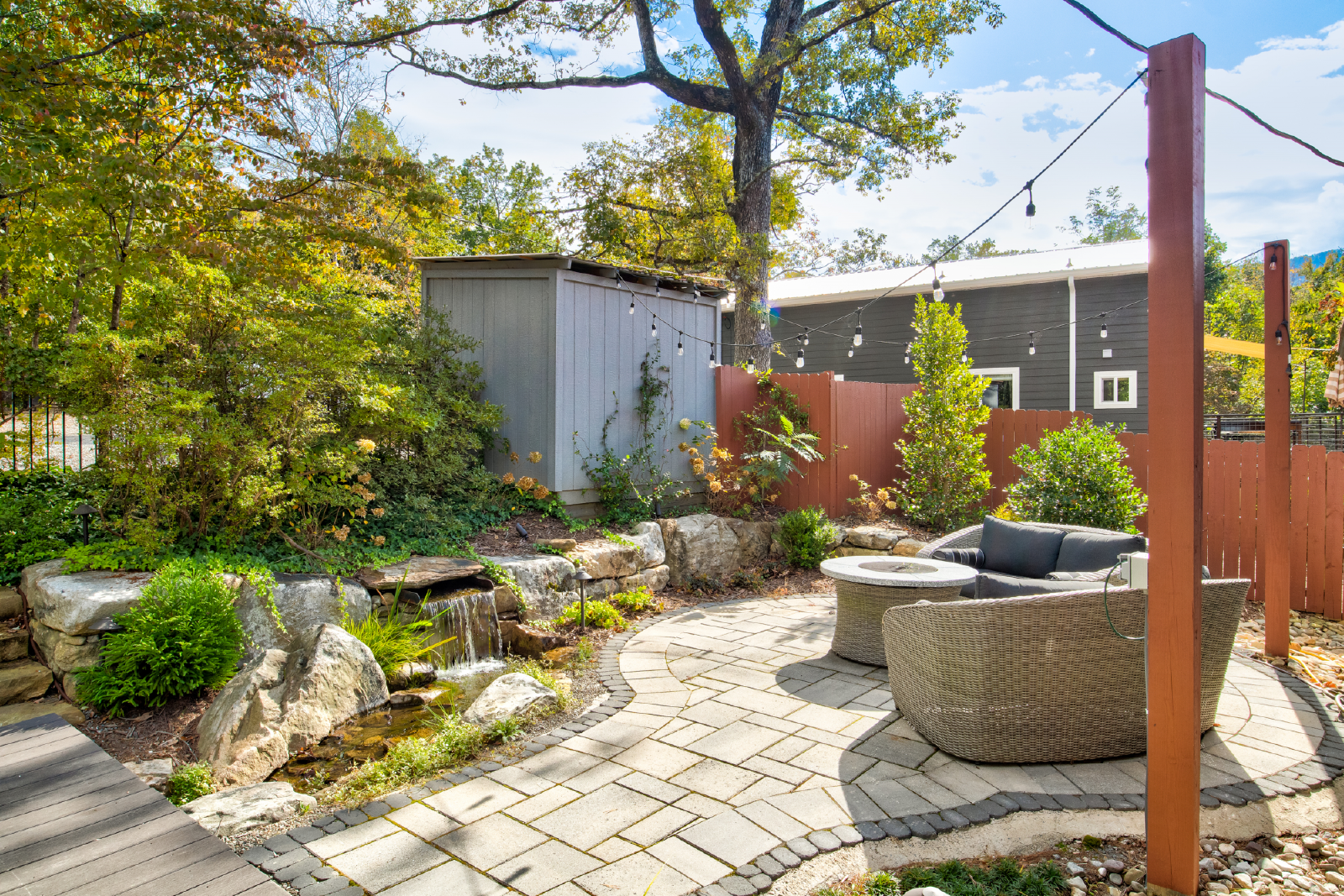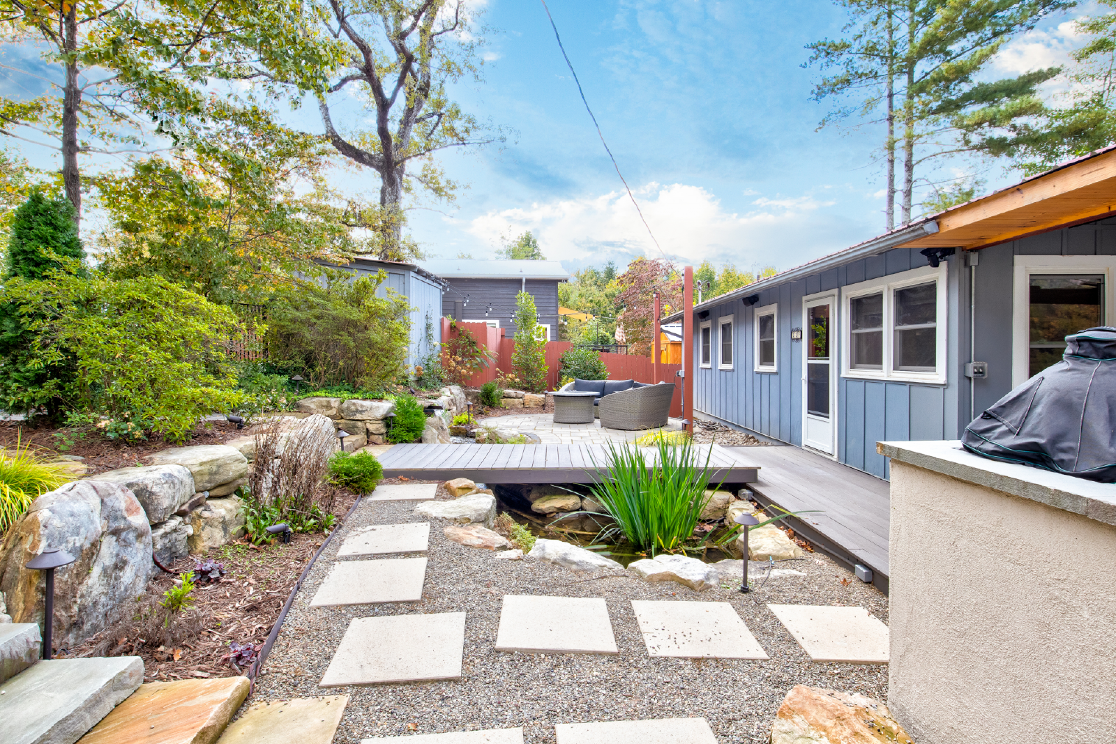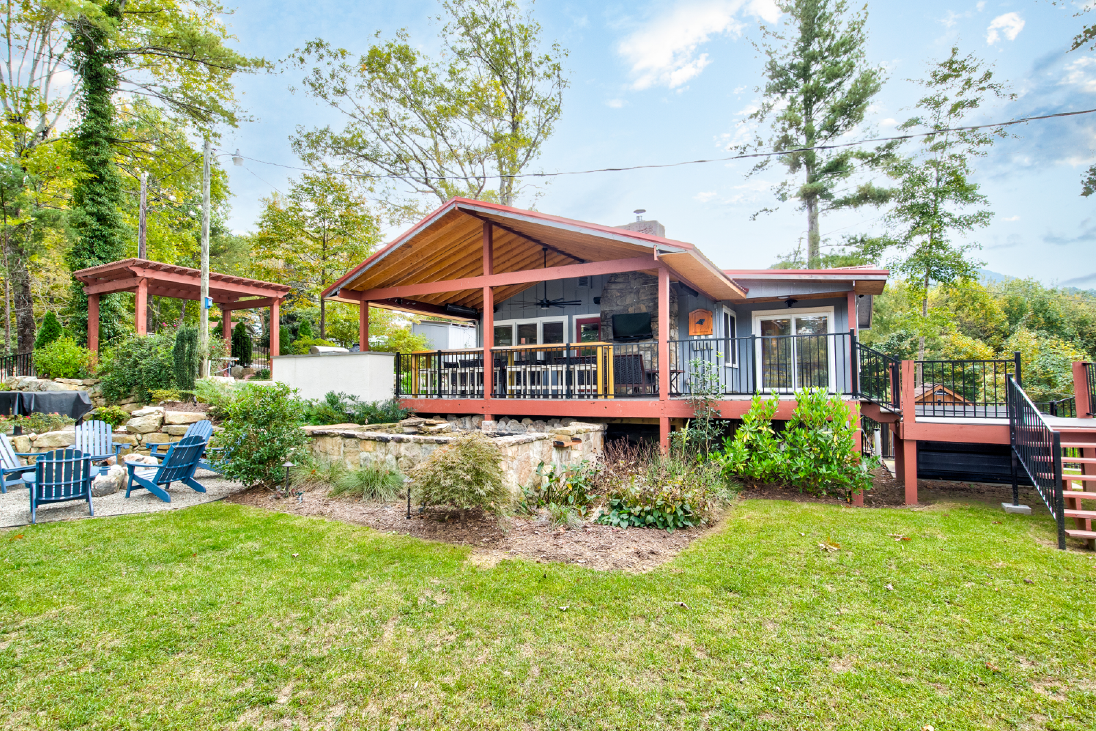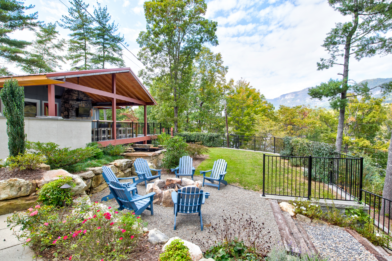 Come for the views and sounds of the Lake and Mountains, stay for the amenities. Cottage at Lake Lure has it ALL! The outside area, perfectly landscaped, outdoor seating, dining & kitchen (Both Gas and Green Egg grill), pool table, Foosball table, koi pond, water fall, two fire places, outdoor heaters, big screen tv, darts and a nice grassy area for kids to play. Minutes from town and 10 minutes to Chimney Rock