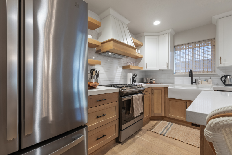 The fully equipped kitchen is a chef's dream, complete with modern appliances, ample counter space, and all the cookware and utensils you need to whip up delicious meals for your family and friends. The adjacent dining area provides a welcoming space to savor your culinary creations, with seating for everyone in your group.