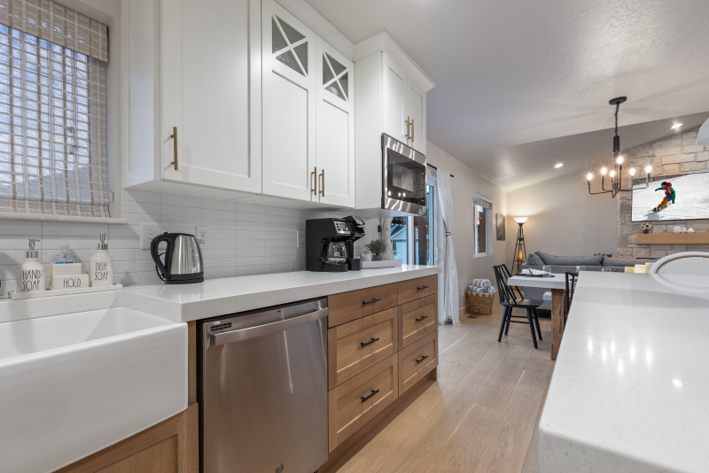The two-car garage provides secure parking and storage space for your outdoor equipment, whether it's skis and snowboards in the winter or mountain bikes in the summer.