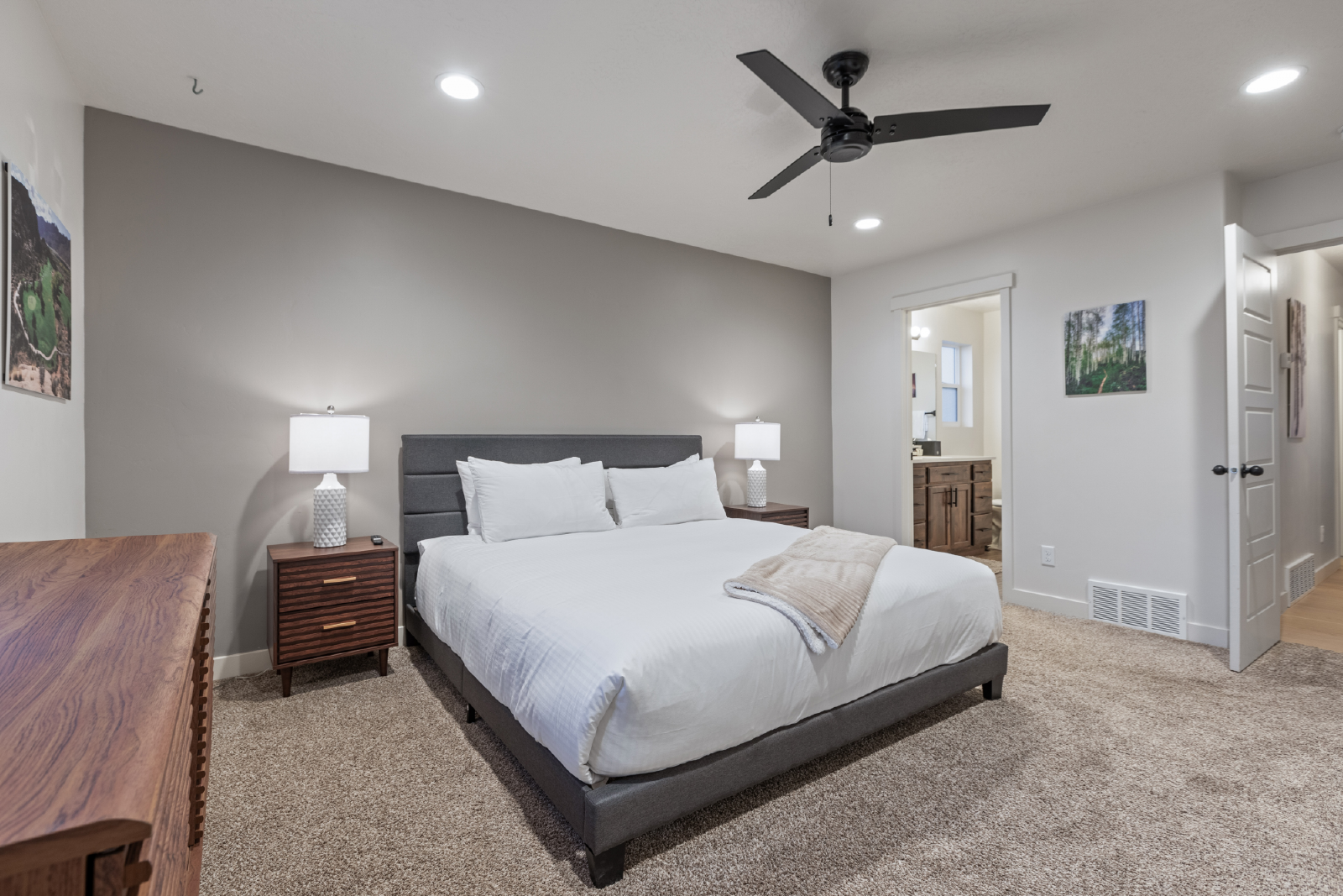 Five beautifully appointed bedrooms offer comfortable sleeping accommodations for up to 10 guests, making this home ideal for family gatherings or group getaways. The master suite is a true sanctuary with its own private bathroom, and each room has been thoughtfully designed to ensure a restful night's sleep.