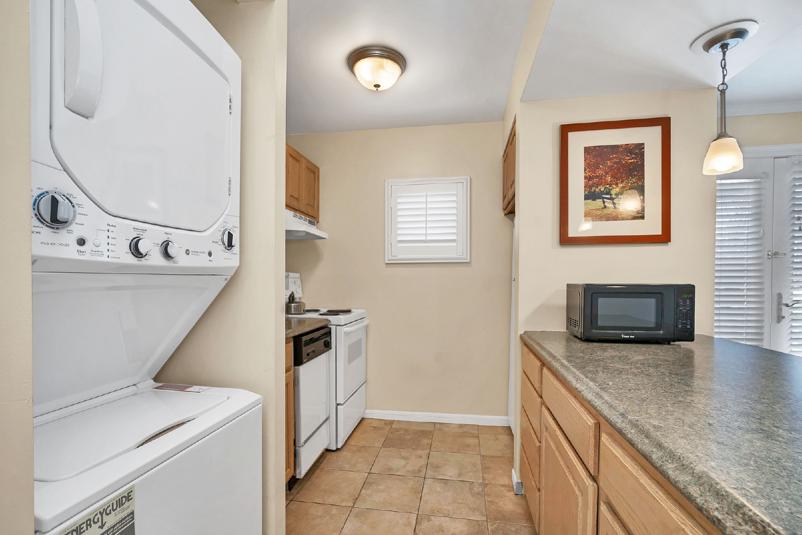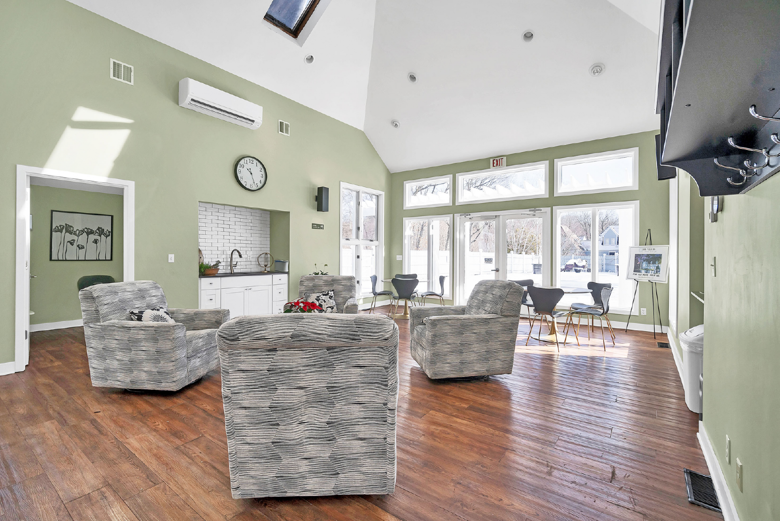 Just a few steps away, Clubhouse II awaits with its sun-filled space featuring comfortable seating, a flat-screen TV and a Wi-Fi access. A wet bar, unisex restroom, and a coin-operated laundry room enhance your convenience, while the outdoor saltwater pool (open seasonally) offers a perfect spot for relaxation or a refreshing swim.