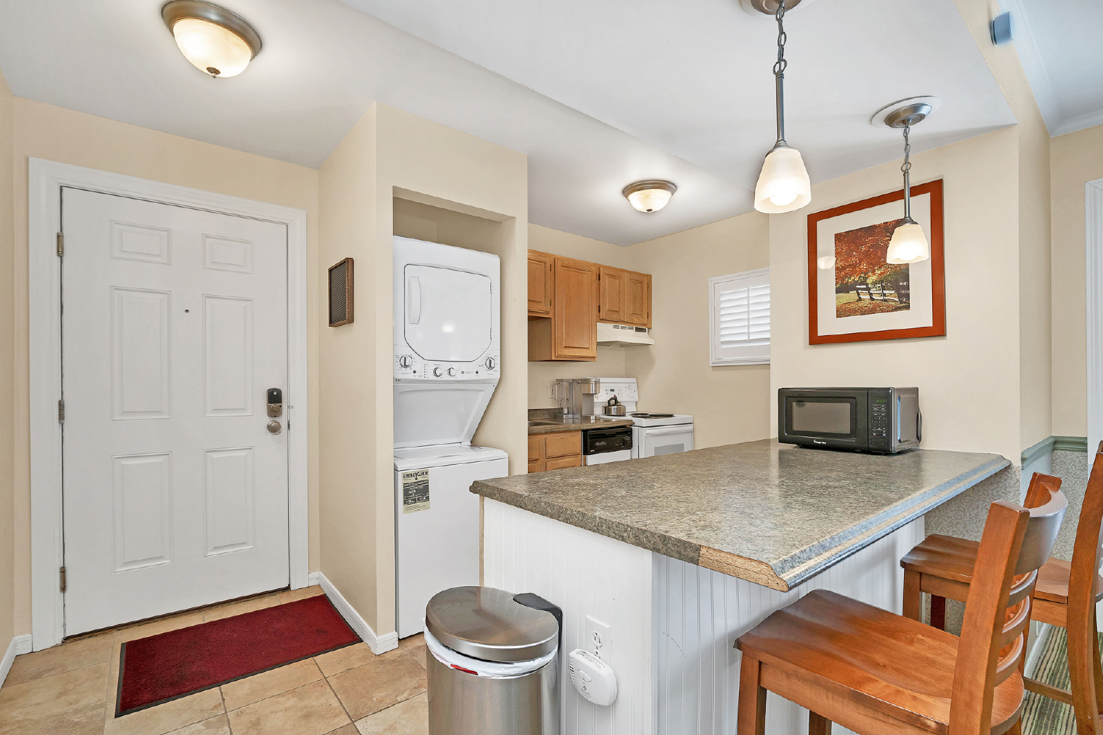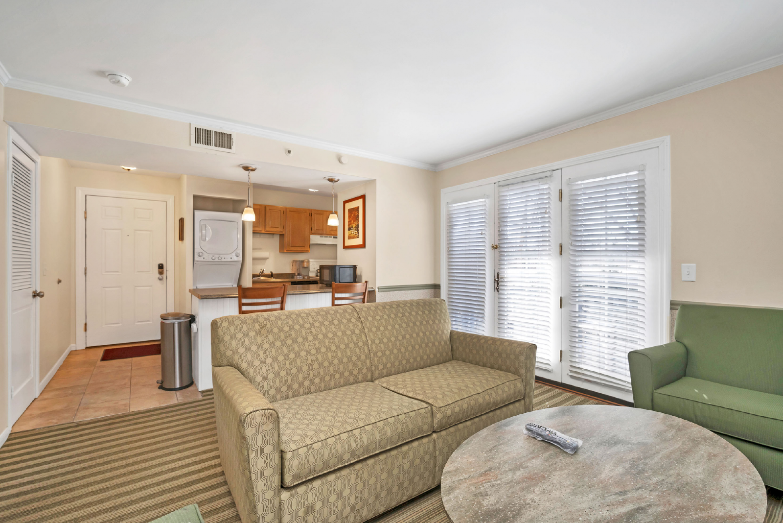Our villa offers a cozy floor plan with a fully equipped apartment-style kitchen, full bathroom, and bedroom with two double beds. Central air conditioning/heat to ensure your comfort in any season. Step out onto your private deck or take a short stroll to immerse yourself in the tranquility of our perennial gardens and shimmering ponds.